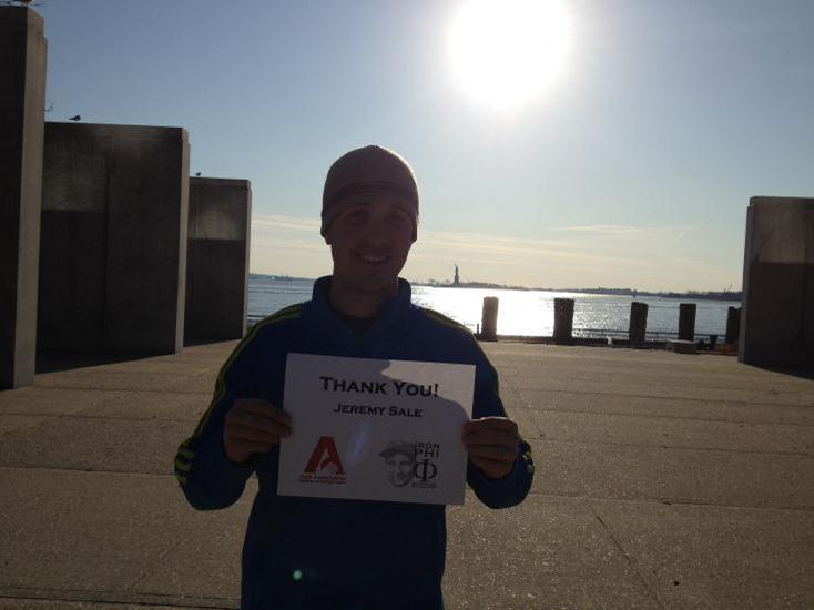 I arrived near Penn Station in Manhattan and took the red line to South Ferry, where I walked a few minutes to the Doubletree Hotel in the Financial District. My cousin Matt was in town working, so he let me crash with him. It was a great luxury to have in the city. I changed clothes and headed down to the waterfront to begin my run. Here, I was to thank Jeremy Sale again with the Statue of Liberty in the background. As you can tell, we were battling the sun.