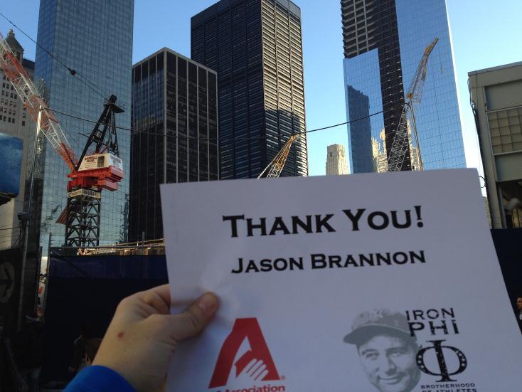 Being near the 9/11 memorial brought with it some interesting emotions. I found it prideful, saddening and exciting all at once. The new towers that are being erected are something else. Here, I was able to thank Jason Brannon for his gift.