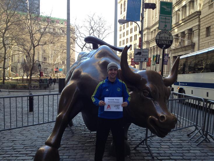 I headed to Wall Street for an awesome picture opportunity with the world-famous Wall Street bull. Here, I was able to thank David Stollman for his gift. The next morning on the news, I heard that the Dow had reached its highest point since 2008. That slap on the bull’s backside proved to be successful.