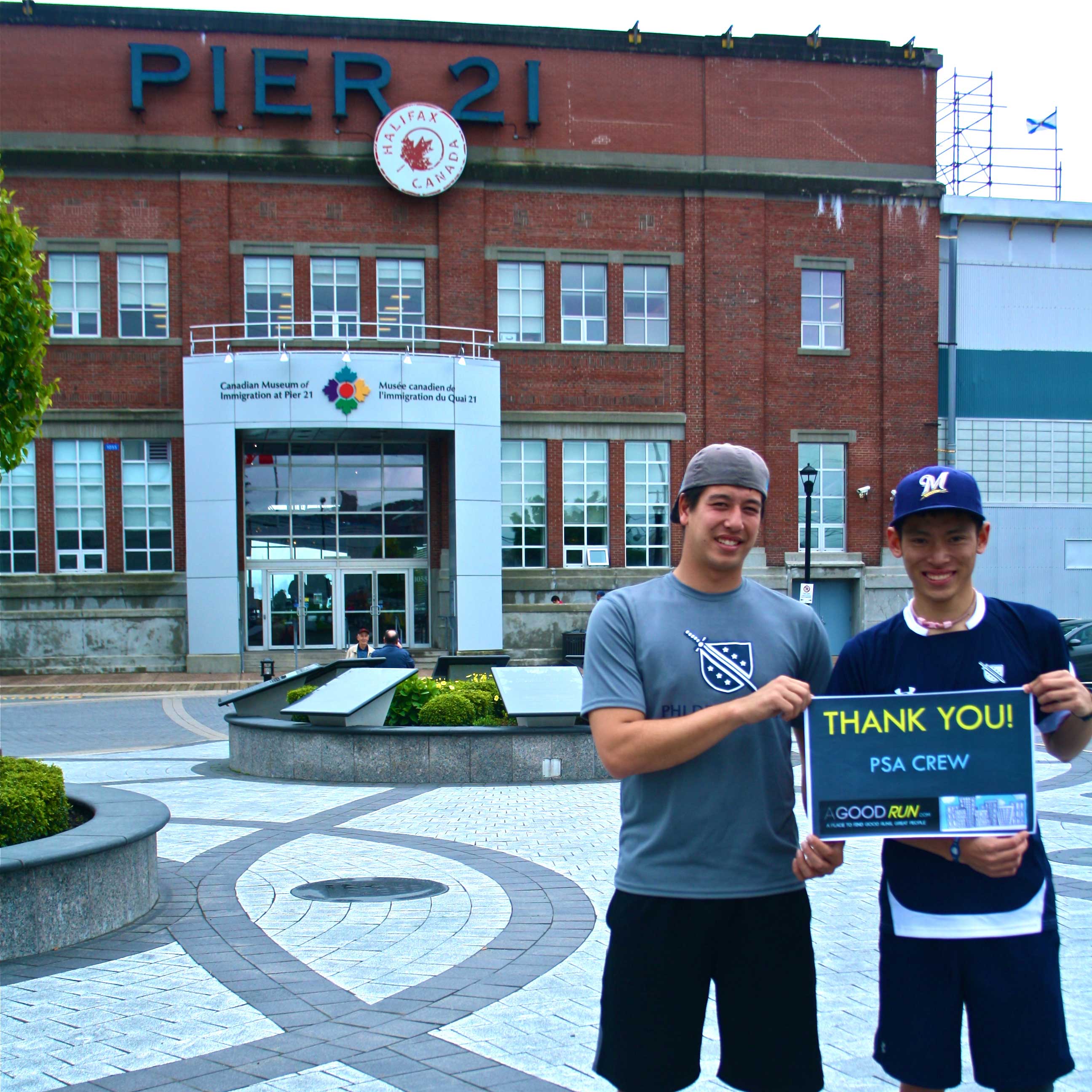 Pier 21 is a former ocean liner terminal that has been converted into Canada’s National Museum of Immigration. Nicknamed the “Gateway to Canada”, Pier 21 served as the primary point of entry for many immigrants from Europe and elsewhere between the years of 1928 and 1971. In addition, it served as a deployment site for Canadian troops during World War 2. I joined up here with Graham Erskine, one of the guys I had thanked earlier in the day. Graham usually hates running, but agreed to lace them up and do a short 2K through the shipyards with me on top of taking the lead on organizing all my runners throughout the course of the day.