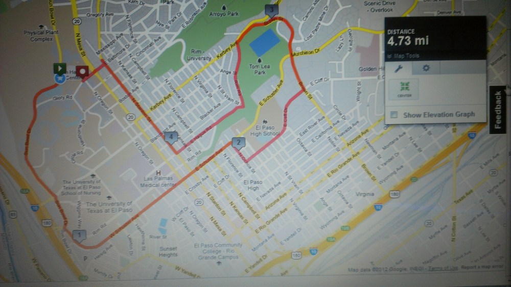 El Paso is a great place to run. There is so much available to runners in terms of variety. I had a really hard time deciding where to run for this blog entry. There is Franklin Mountains State Park with tons of trails to be explored and McKelligon Canyon that has paved roads and almost no traffic. There is also Scenic Drive that takes you over the southern edge of the mountains. Then there’s Transmountain Road that is roughly 13 miles long and reaches an altitude of 5,280 feet (1 mile) at its highest point. A run through Billy Rogers Arroyo Park lets you do some trail running in desert setting. Ultimately, I picked the place I spend most of my time; the UTEP campus and the surrounding area. There are some really special things around my campus that I thought I might like to share with everyone else.