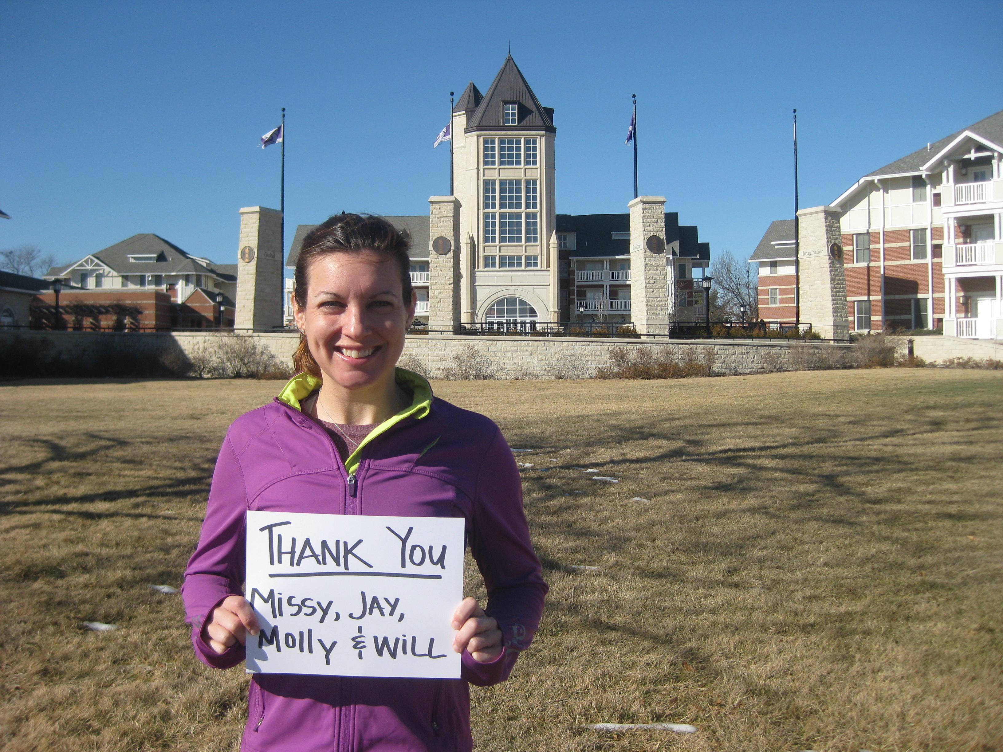 The next thanks goes to our dear friends, who are our chosen family. They’ve been part of our lives since Mike and Missy worked together in Marketing at the University of Kansas, as we planned a wedding and fumbled around to find ourselves among the reality of a first real job. Many miles have separated us a time or two, but our friendship is a constant and we love to have an excuse to go to Kansas City for a day or quick overnight to visit them. We have long forgiven them for being Wildcats, (although they do have a little Iowa State lineage in their extended family) although that’s taken a lot of wine and tolerance. We have run most of our half marathons together, and the unfortunate lone adult who decides not to run is in charge of watching the kids. Sucker!