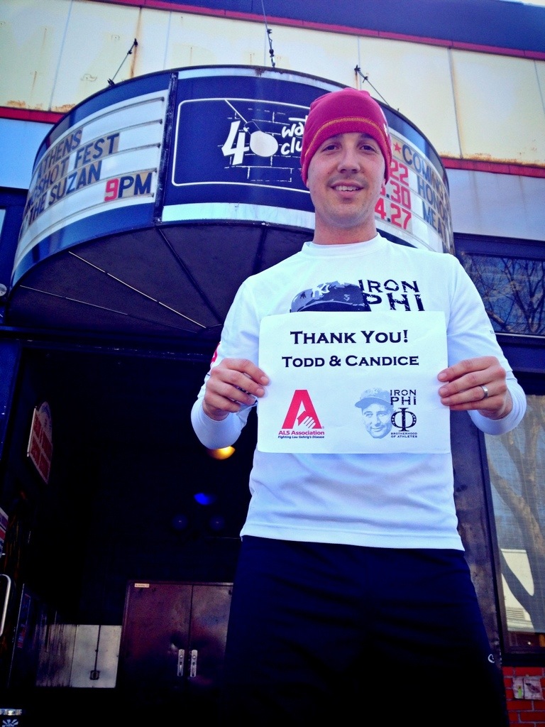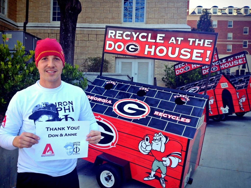 We headed back to Athens to begin our run. Tillie and Gabby dropped us off near campus. Jeremy had the great idea to stop at the Alpha Gamma Delta house to take a picture for Jennifer Mores who is a Georgia Alpha Gam herself. More about Jennifer in a bit.