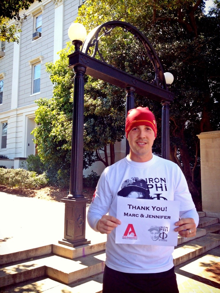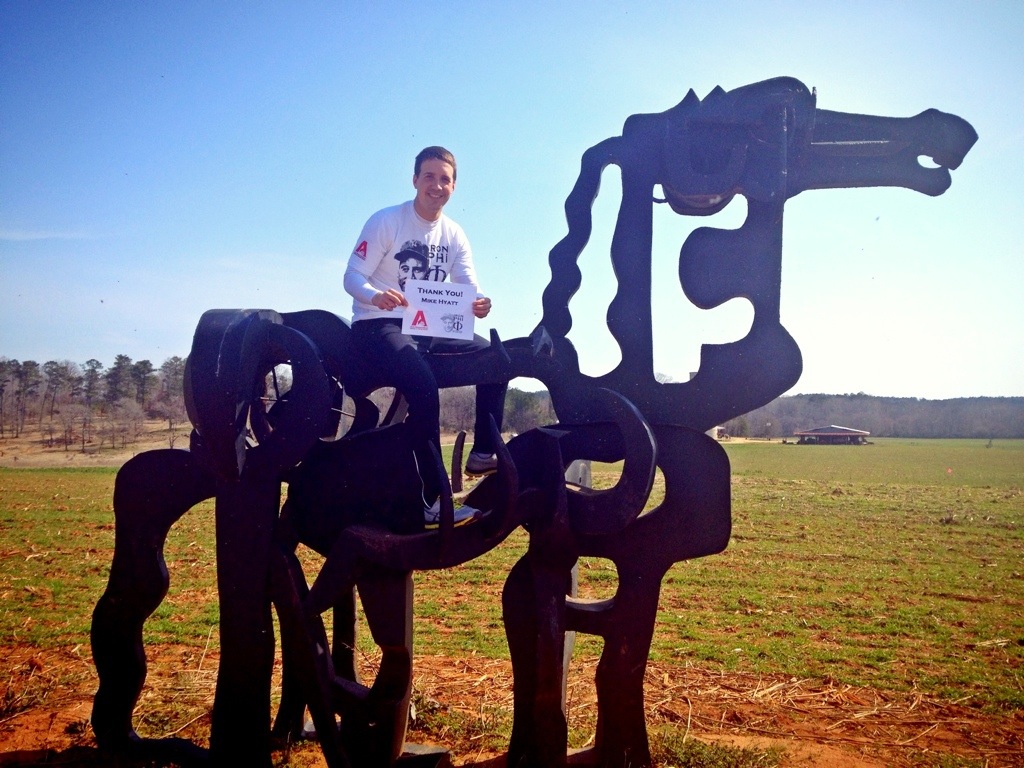 The Iron Horse Statue was first located at the University of Georgia, but because of numerous pranks by students, the horse was moved away from campus. Here, I was able to thank Mike Hyatt for his donation. Mike is one of Phi Delta Theta’s Province Presidents (regional volunteers), and he lives in Texas. We enjoy chatting Big 12 sports as Mike is an Oklahoma State Cowboy. Mike, thanks for your donation. The Iron Horse was definitely the spotlight landmark for the trip, and I enjoyed sharing it with you. For those who are wondering why an Iron Horse, I’ve raised funds for Lou Gehrig’s disease during this trip, and Lou Gehrig was known as the Iron Horse. It was a very symbolic stop.