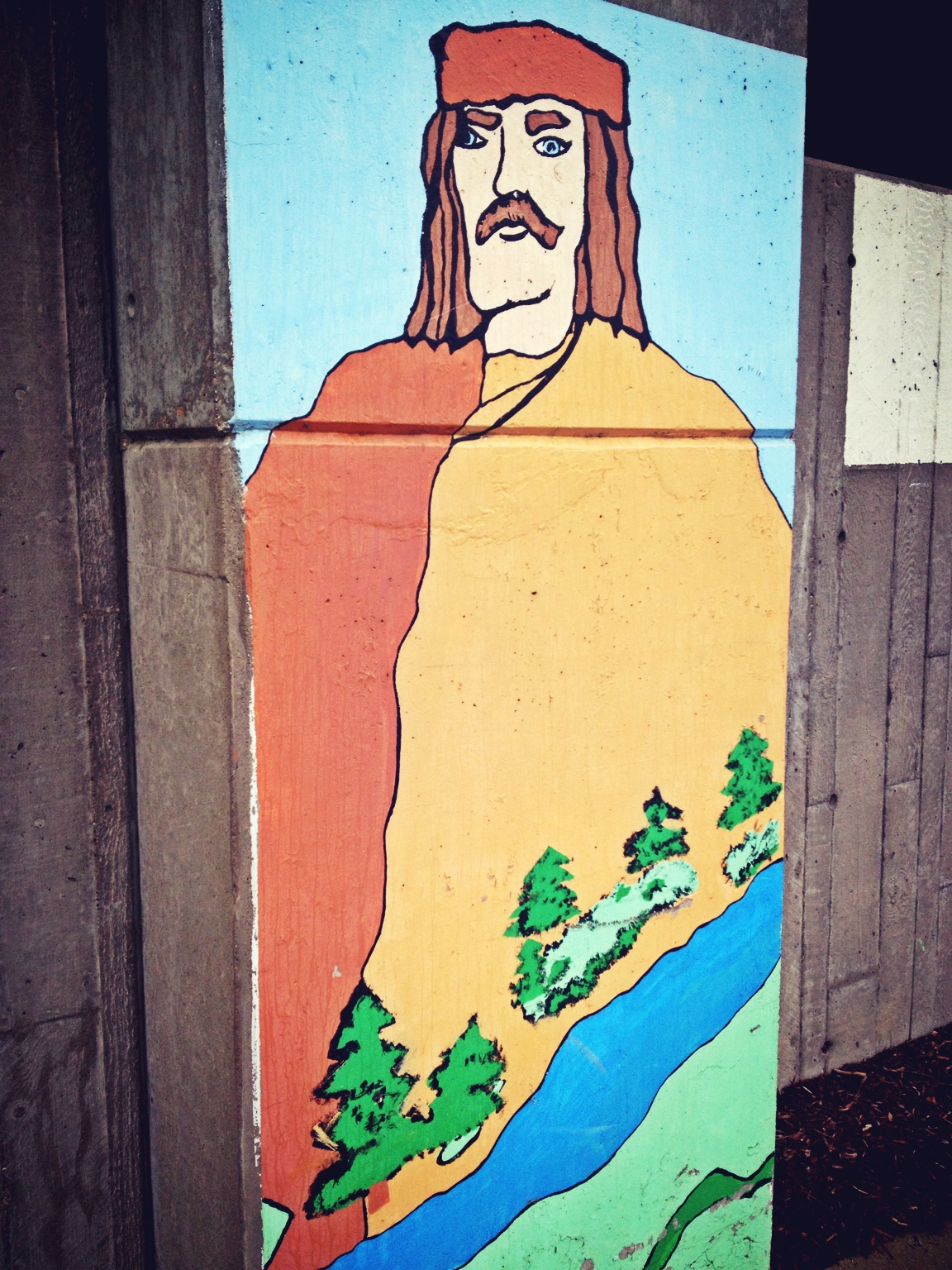 Dubuque lies at the junction of three states: Iowa, Illinois, and Wisconsin, a region locally known as the Tri-State Area. The first permanent settler in what is now Dubuque was a Quebecois pioneer, Julien Dubuque, who arrived in 1785. In 1788, he received permission from the Spanish government and the local Fox tribe of American Indians to mine the area’s rich lead deposits. Tributes to Julien Dubuque can be found all over the city, including this fun mural. He looks like one cool dude!