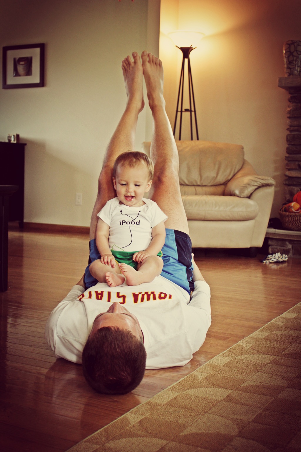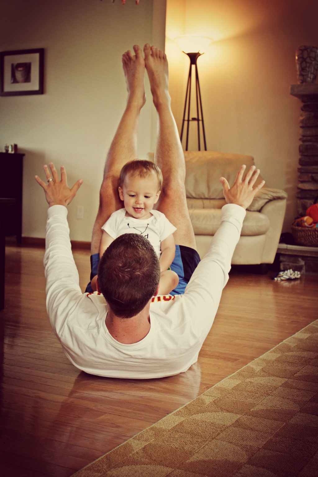 It’s amazing how many frozen pizzas are consumed in your young parenting days, so it’s important to execute an exercise for your mid-section. The first step to this exercise is to place your baby in a sitting position on your stomach. Note that your baby’s feet will more than likely be right in your face, but have no fear. Of all the things that stink on babies, their feet are surprisingly refreshing. This is proven by the simple fact that for some reason, people love putting their babies feet in their mouth to get a reaction. Wait, that’s just me?