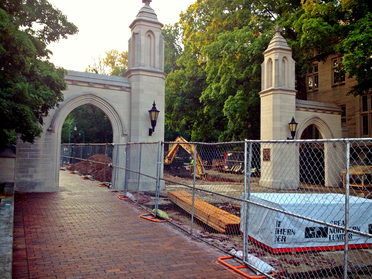 We turned around and ran back towards campus on 4th St., home to an eclectic choice of international restaurants. The Bloomington dining experience is amazing with so many choices. We ran to the IU gates, one of the neatest entries to campus that I’ve seen, but we found it under construction. I guess the summer is a great time to construct.