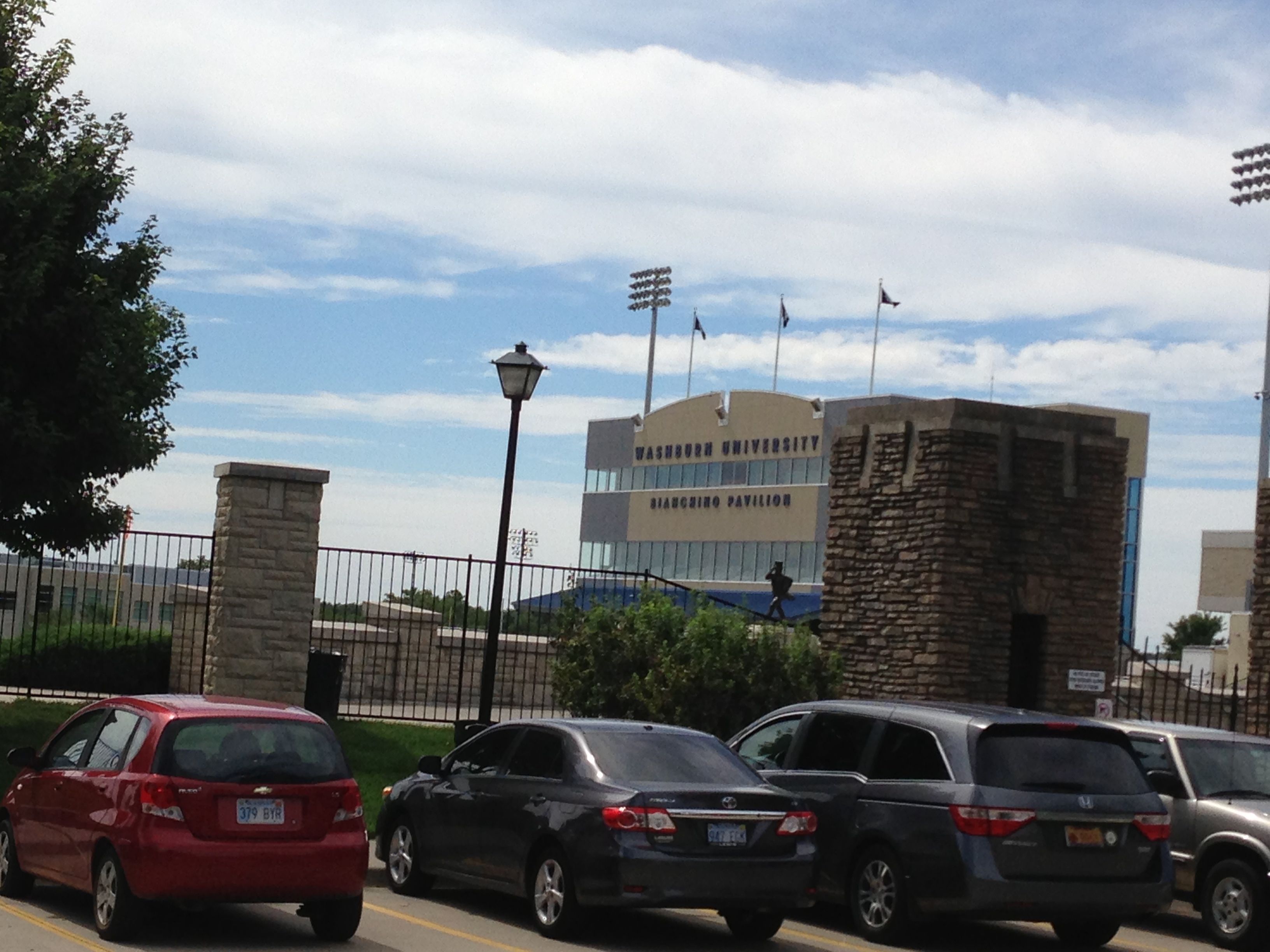 I began my route on the Washburn University campus in front of the Phi Delta Theta House. This house was my home for four years while I was at Washburn as an undergraduate. I paused in front of the house to say an initial thank you to three of my closest friends and fellow Phis. Rick LeJuerrne and Clint Whitney were both on the rush team for the chapter the spring and summer leading into my freshman year. We were all from the same hometown so they knew me already (which could have either helped or hurt my chances of being invited to join!) and made sure that I felt right at home during my rush experiences. These two along with Ross Hendrickson, a pledge brother, are my best friends. They all have helped me through many trials and tribulations in my life. I am lucky to have them in my life and our friendship really began in the house right behind me in this picture.