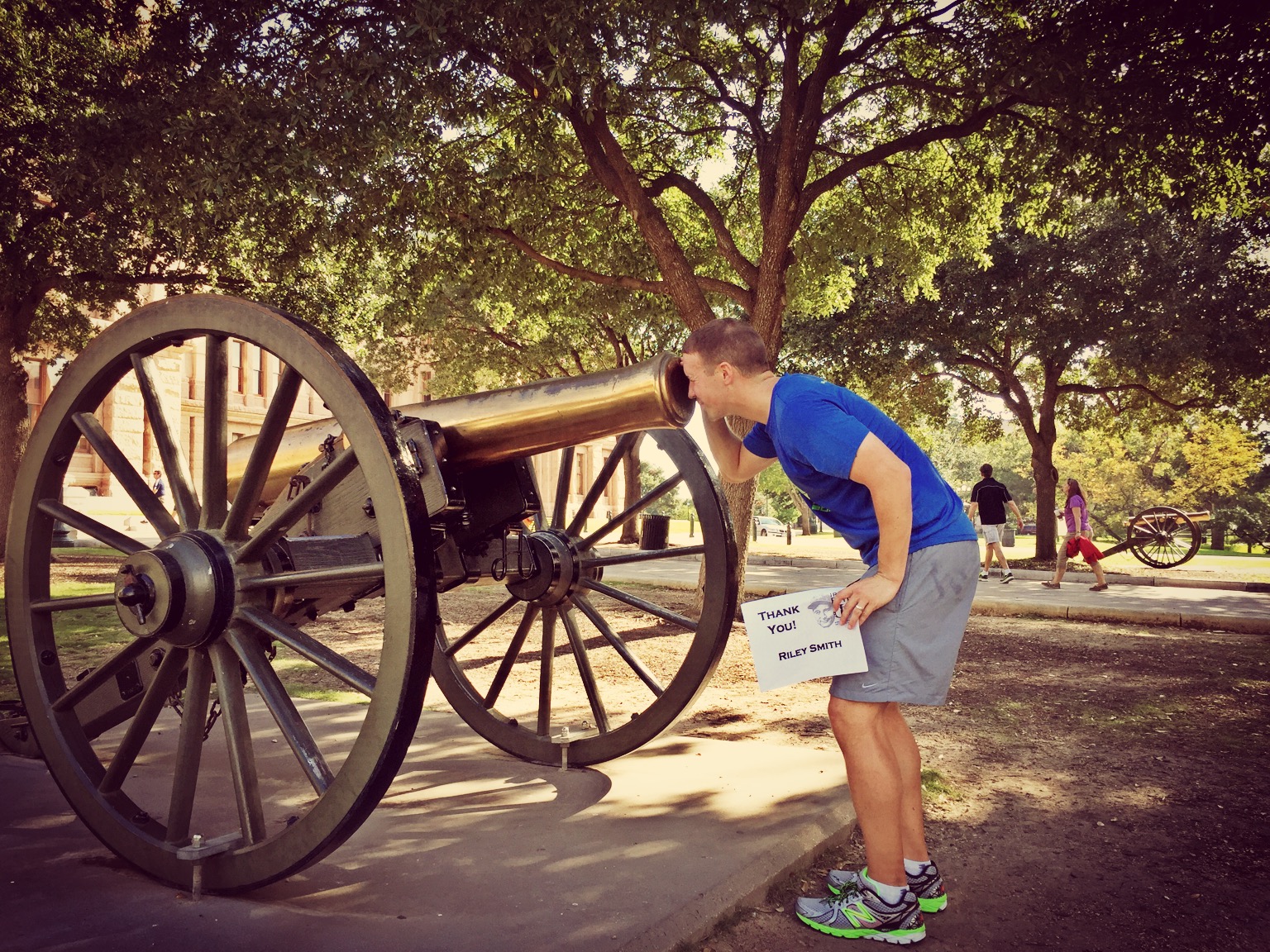We then ran to the Texas State Capitol, where I was able to indulge in one of my favorite pastimes, looking into cannons. Here I thanked Riley Smith, a friend from college. Riley and I ran into each other at an airport (not really sure which one now) about a year ago, and it was a pleasant surprise!