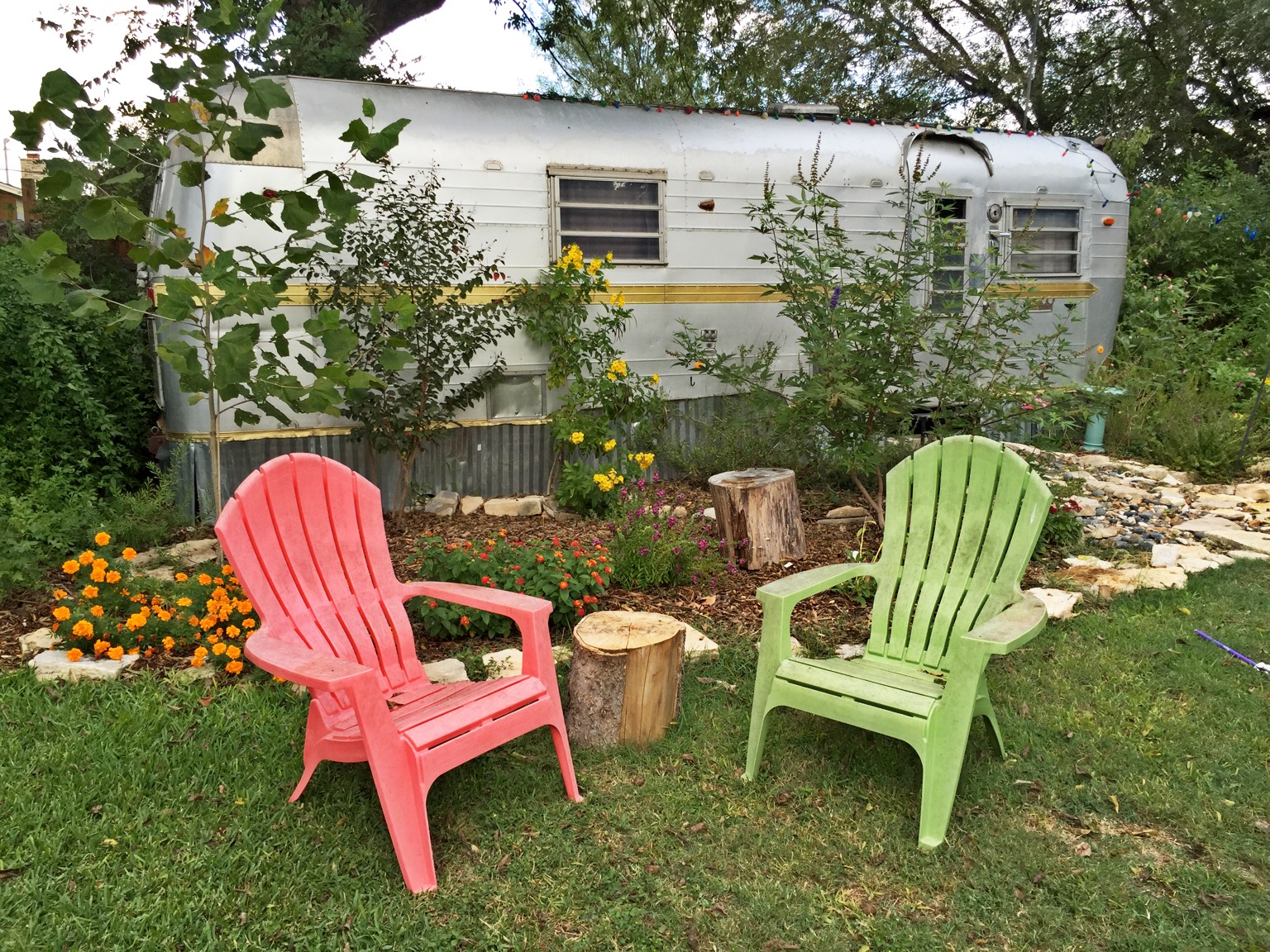 One of the best things about my time in Austin is where I’m staying tonight. I linked up with Marcie and Meredith through Airbnb, and they were so gracious is hosting me for the evening. Tonight’s stay may just be my most unique of my life as I’m staying in their amazing Airstream trailer in their backyard oasis. You know it’s going to be a great night when this sign welcomes you!