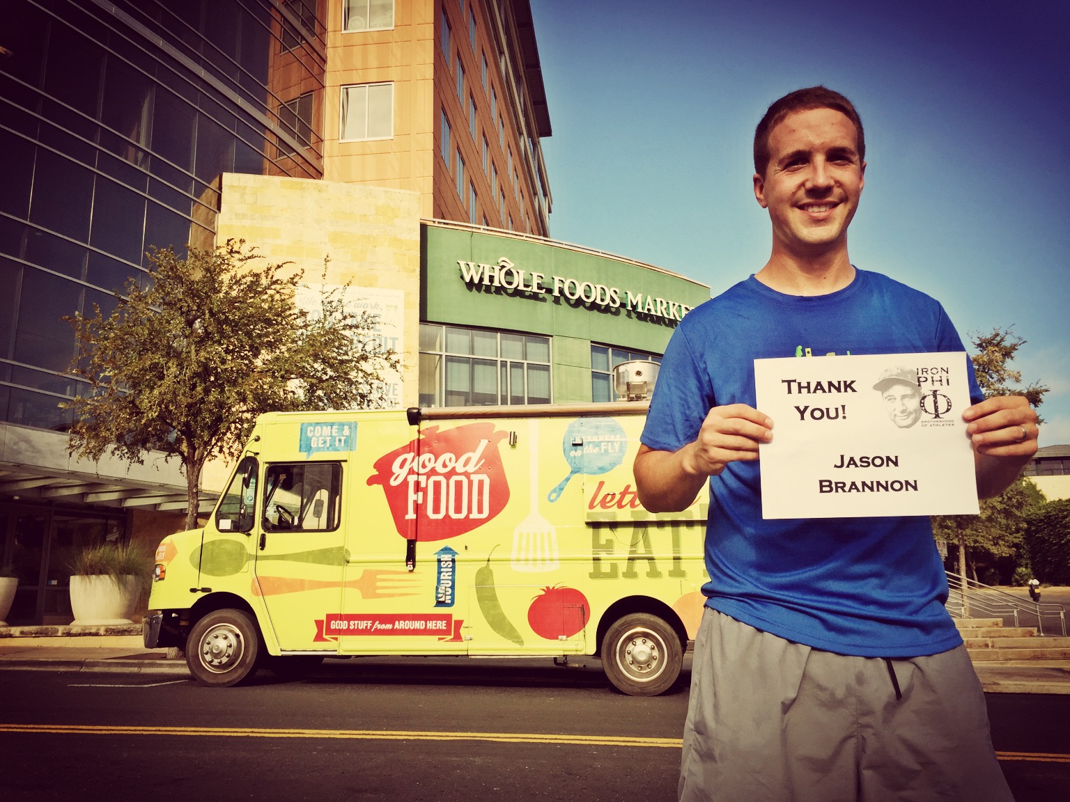 We headed west down sixth street to the Whole Foods flagship store. Austin is home for the Whole Foods headquarters and this store is amazing. While we weren’t in the mood for some delicious food, we did grab some electrolyte infused water (because regular water just isn’t good enough sometimes) and a banana. I took a moment to thank another Iowa State Phi Delt Jason Brannon who has been so gracious to support all three of my running trips. I’m not sure if they have Whole Foods in London (where Jason is living), but knowing his love for being health-conscious, I’m sure he’s a fan!