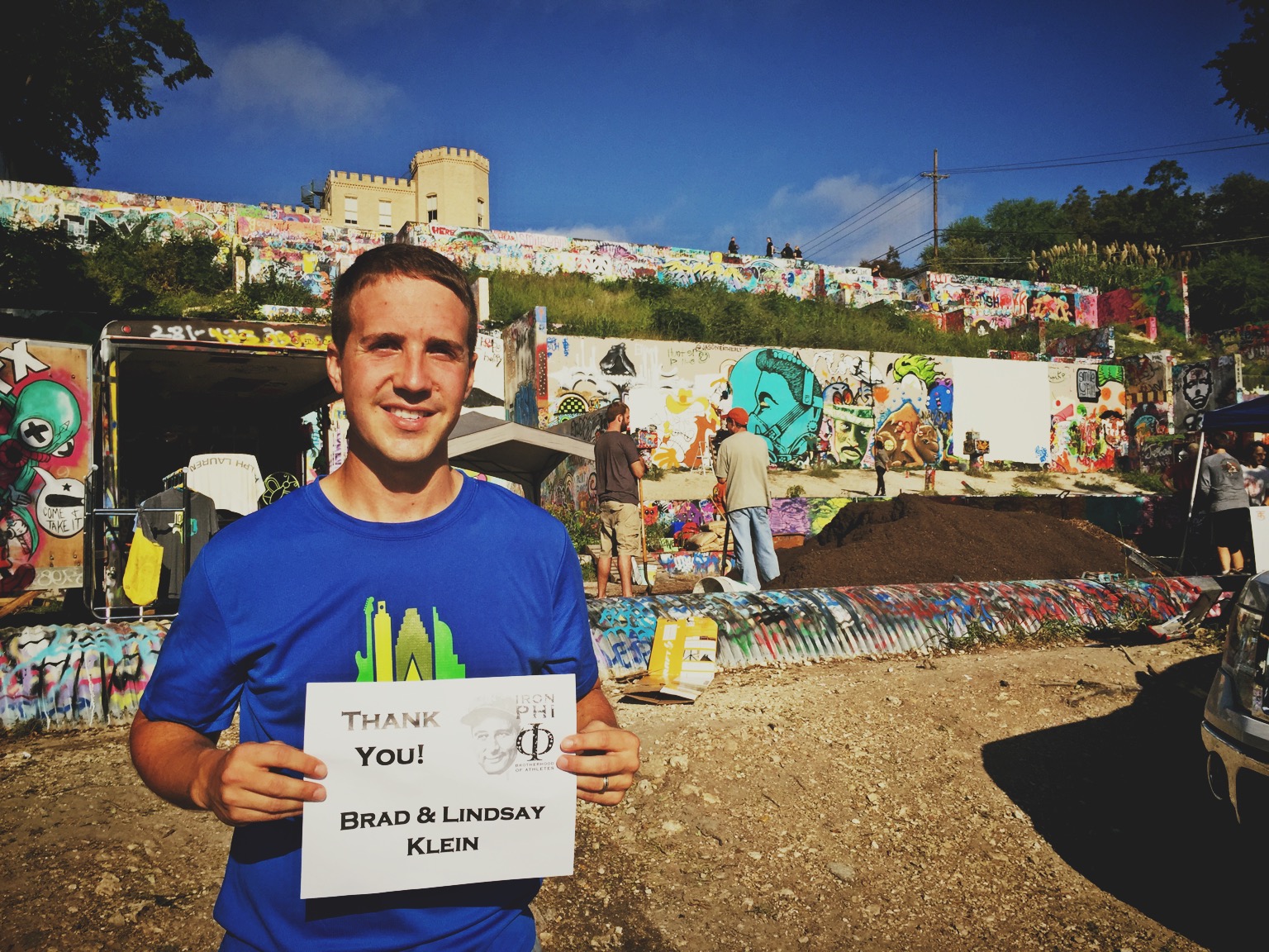 My next stop was one of my favorites. Graffiti Park is a multi-level graffiti park that allows anybody to showcase their skills to the public. It’s a happening place, always filled with people in awe. Here, I thanked my friends Brad & Lindsay Klein for their donation. I grew up with the two of them in Fort Dodge, Iowa, and they are two of my favorites. Brad had me rolling when he posted this amazing picture from his son this week. I hope to see the Klein family soon!
