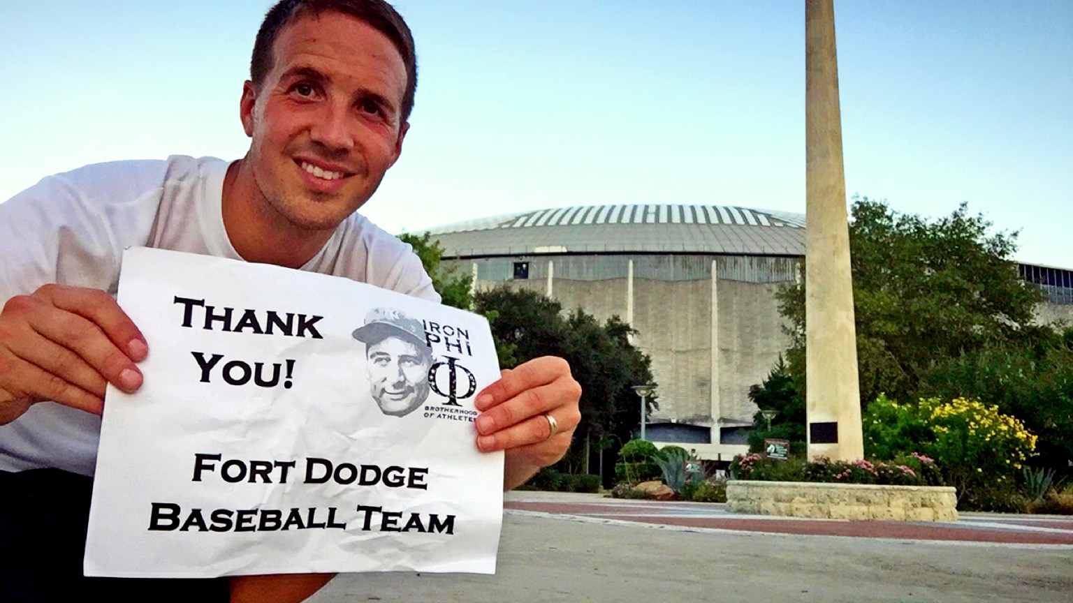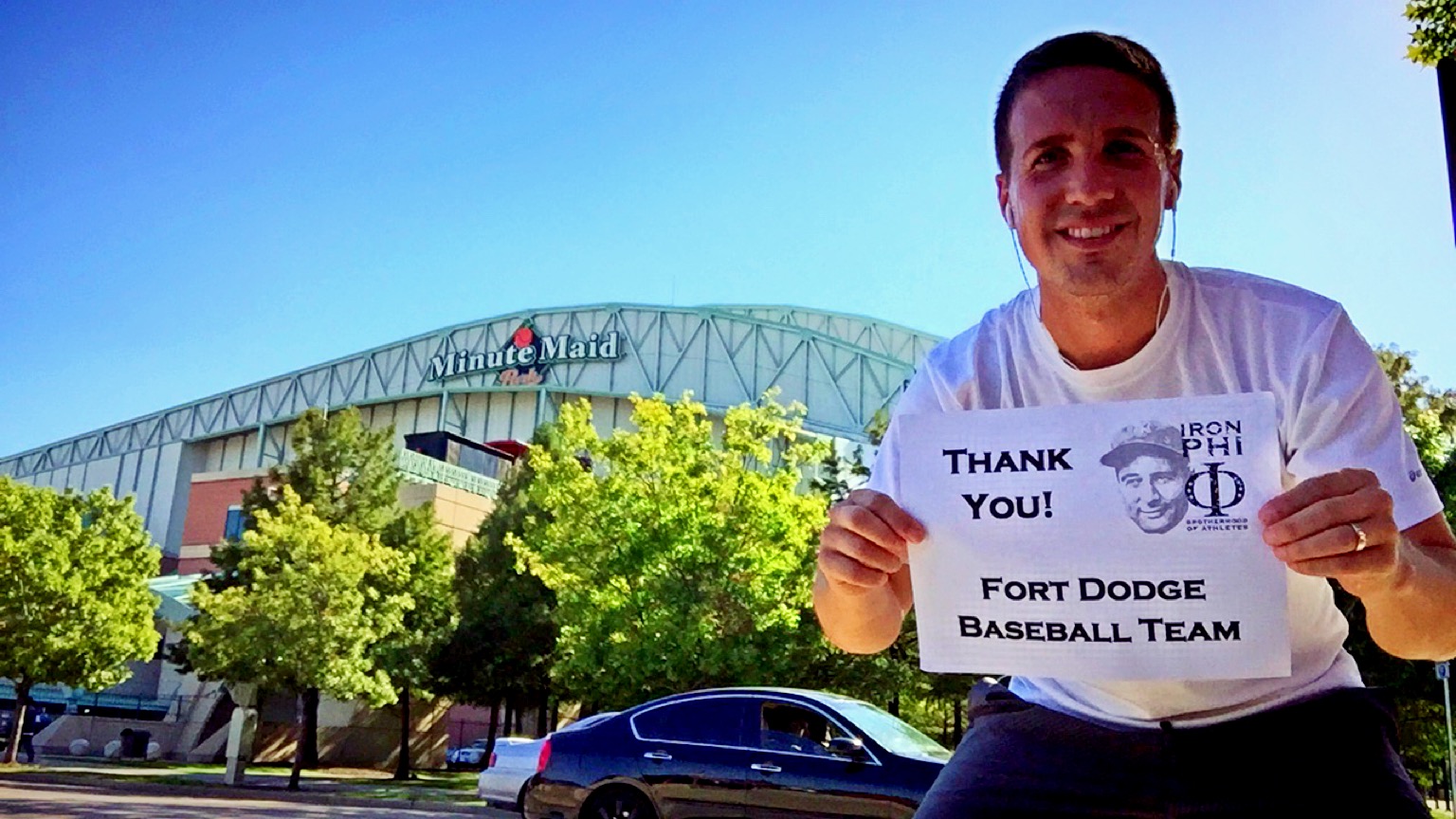 I stopped for a bit for a few refreshments and had my first “should I go on?” moment. I had six miles under my belt and another three to go until my final stop. I was pooped, but I remembered why I do this run and instantly gained motivation again. After the final three miles, I came upon my final two stops. The Houston Astrodome was the world’s first multi-purpose, domed sports stadium. It served as the second home to the Astros from its opening until 1999, and also to the NFL’s Houston Oilers (WARREN MOON!) from 1968 until 1997. It also had the nicknamed “The Eighth Wonder of the World.” Today, it’s a bit worn out, but it is still impressive. I thanked the Fort Dodge Baseball team again.