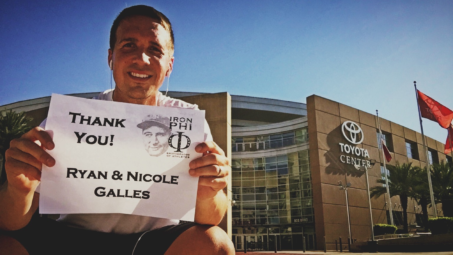 Just down the road from Minute Maid is the Toyota Center, home of the Houston Rockets. I totally should have brought a fake beard to take a James Harden-inspired picture. Here, I thanked Ryan & Nicole Galles for their donation. We tailgate with the Galles family, and they are awesome. We were lucky enough to meet Ryan & Nicole through mutual friends a few years back, and today I always look forward to my time with them. Ryan is one of the most passionate Cyclone fans I know and an optimist to the fullest. They have two adorable girls who are going to give Ryan a run for his money when they start dating, that is if they are allowed to date!