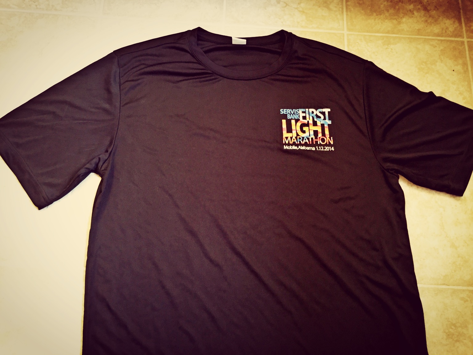 Upon arriving home, I had a running shirt in the mail from Mobile’s First Light Marathon! A few fun facts about the marathon: