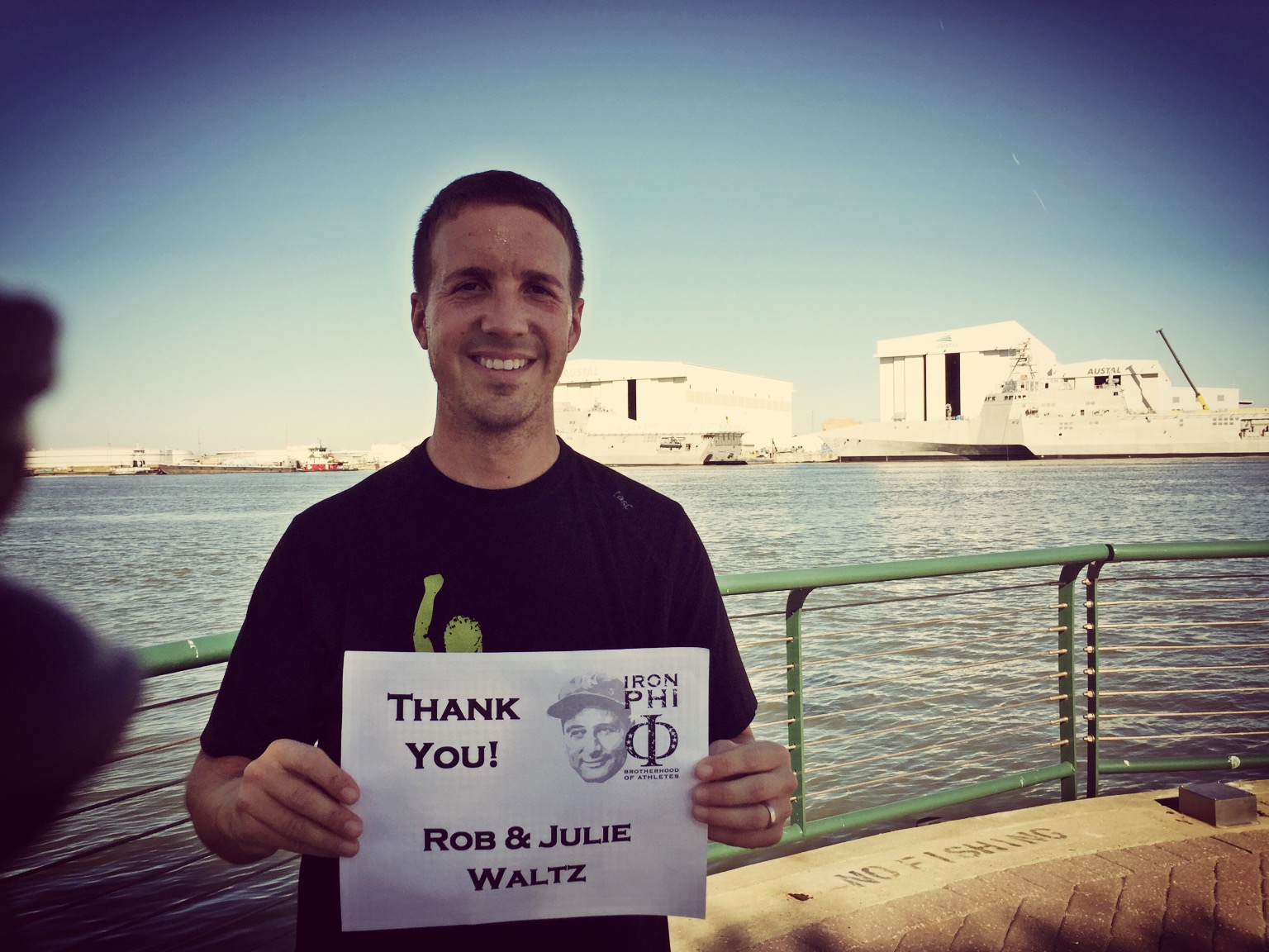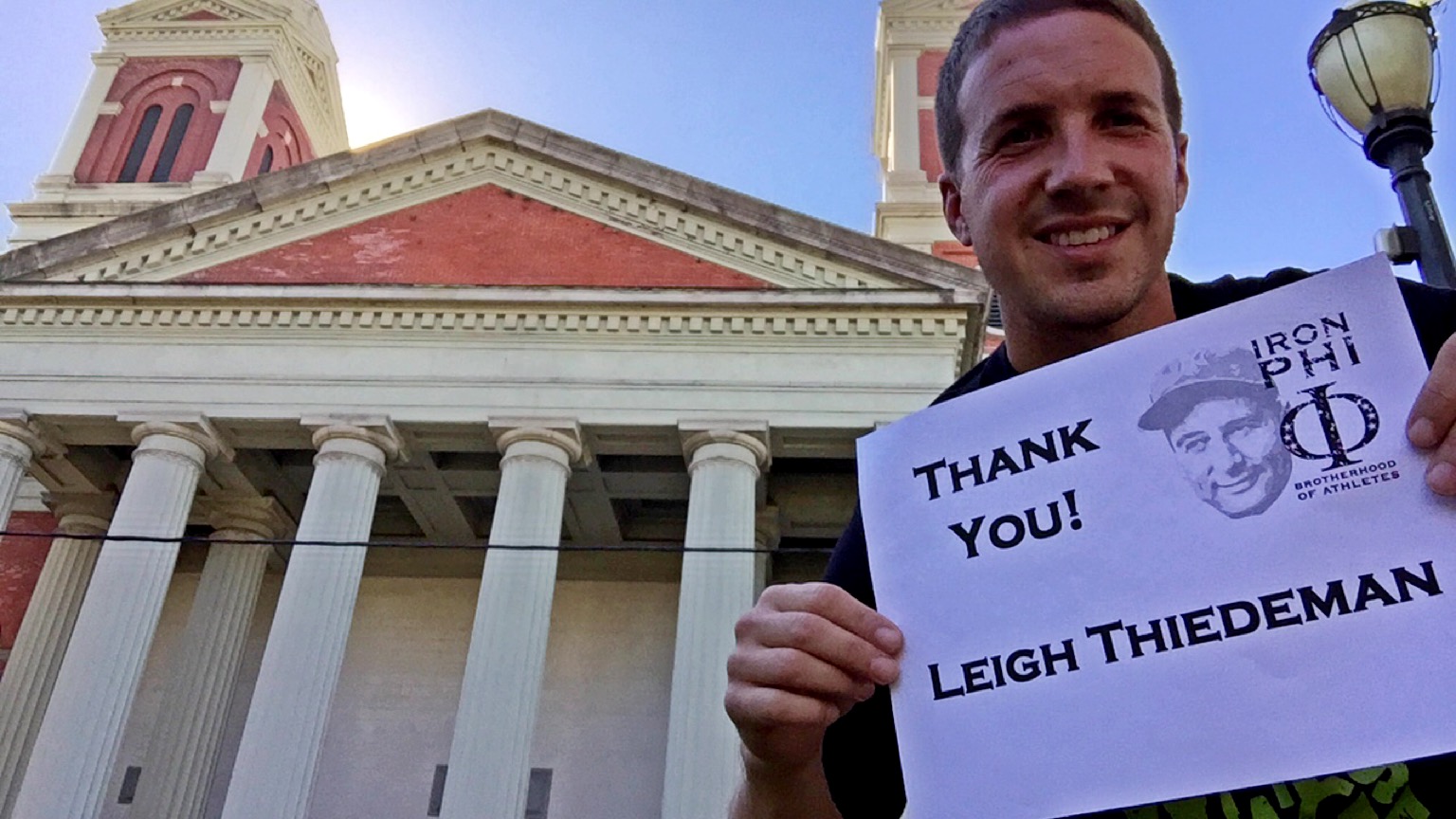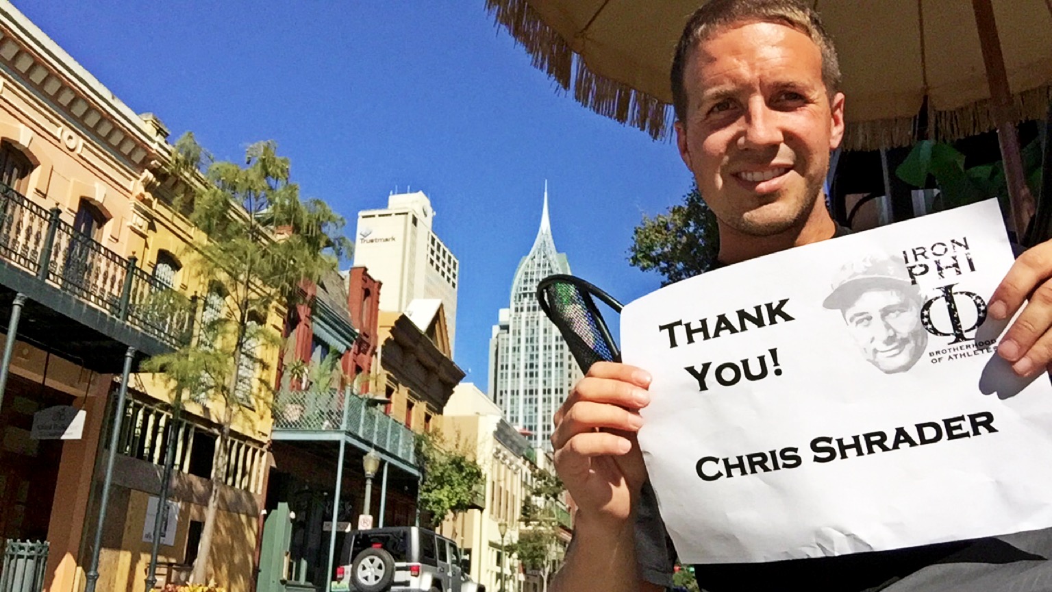Just across the street was a great view of Mobile that represents the old and new architecture of the city. Here, I thanked Chris Shrader, one of our loyal Phi Delt volunteers and great friend. Chris and I have a common interest in rescue dogs, so we swap stories often. He also believes that nobody smiles when they run, so this picture disproves his theory! Chris lives in Indianapolis and has a Phi Delt son who is our chapter president at the University of Alabama. He jumped that football bandwagon quickly as his Miami Redhawks have won one game in a number of years.