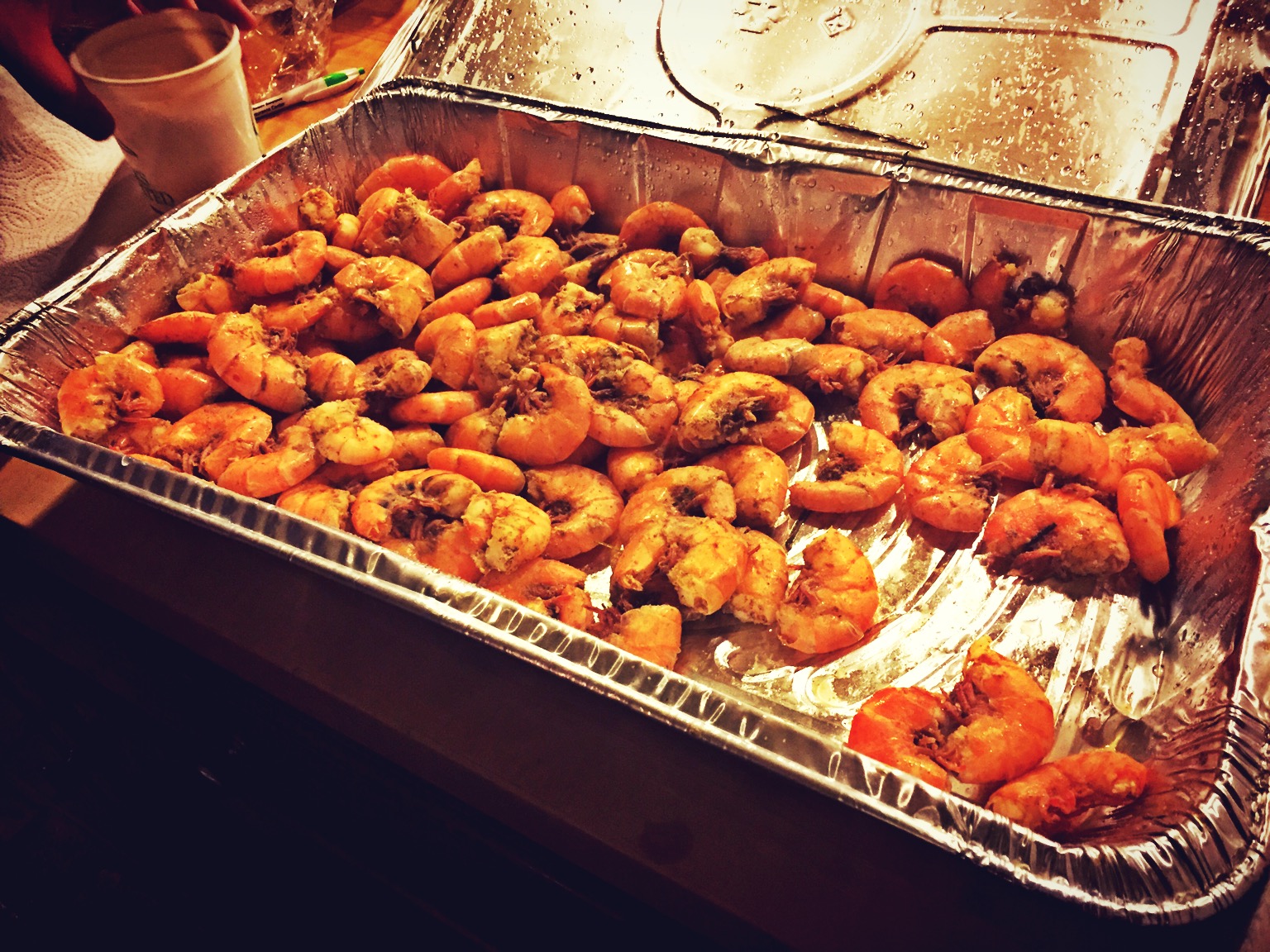 There are certain luxuries that come with staying with a guy who owns a restaurant and who had been catering an event earlier that evening. William arrived back at the place with some delightful shrimp from the Mobile Bay. Fantastic!