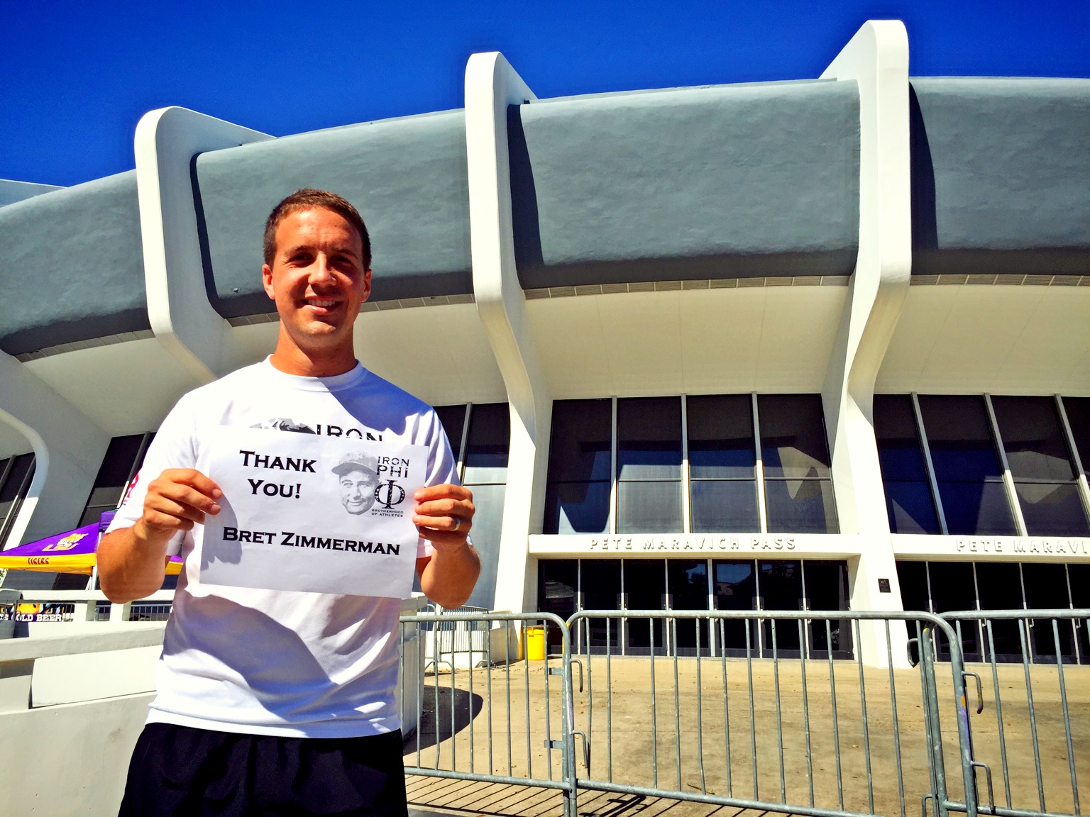 Also in the area is the Pete Maravich Assembly Center, or as David said, the House that Shaq built. It’s a really cool-looking arena, and I got a kick out of the entryway that is named Pete Maravich Pass. Here, I thanked Bret Zimmerman one last time.