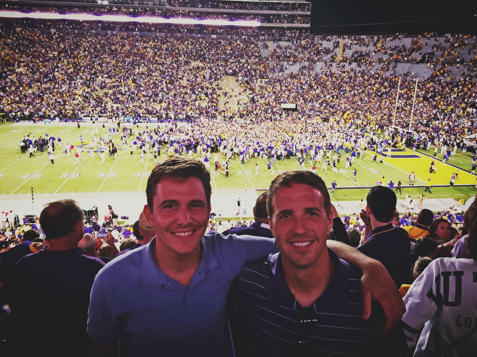 The upset created one last memorable experience, getting to go onto the field at Death Valley. We couldn’t pass it up, and I finally had found my perfect moment to thank Drew for his great donation.