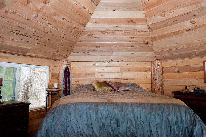 Besides the witch’s hut, the property has a few other unique accommodations. An A Frame cabin….