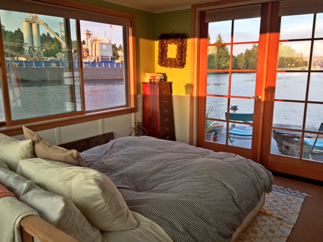 Upstairs was the bedroom with a killer view. Waking up to early-morning rowing crews and flocks of birds landing on the water was awesome.