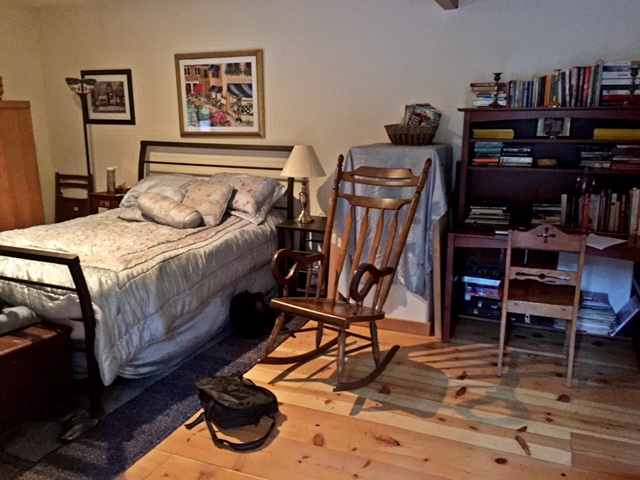 Paul is a semi-retired professor of geography at Humboldt State University with a special interest in the Mediterranean. Annette is an artist, writer and haiku poet with her own art business. She is semi-retired from a career in international development. They have lived in the area for almost 30 years and love the beautiful, friendly community. I’m envious of their international travel and living experiences. Combined, they have lived in Switzerland, Japan, Austria, Italy, Egypt, Brazil and England. They have two teenage children and an awesome poodle-bichon mix named Misha. As dog lovers, we loved being greeted by a four-legged friend.