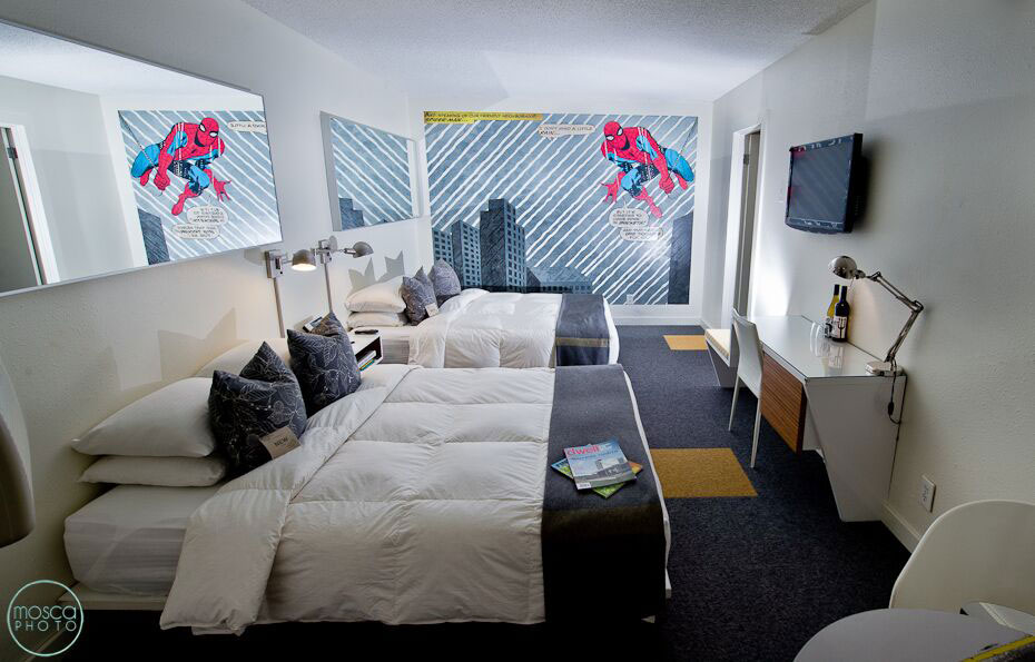 The Jupiter Hotel has the most unique rooms around that feature funky art. A few of my favorite rooms include the Spider Man room…