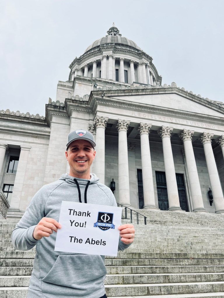 Our first stop was the Washington State Capitol in Olympia, Washington. The cherry blossoms in full bloom, we explored the grounds, and I reintroduced myself to the donor thank you picture, thanking Taylor & Haley Abel. I grew up across the street from Haley in Fort Dodge, Iowa, and she has been a wonderful donor over the years. Ironically enough, I just saw picture of Haley and her family in a few spots that my running trip will take me later this year – Paris/London – which made me even more excited for what is to come.