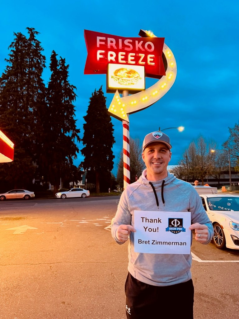 As we headed back to Moe’s, we made plans to get the phone back to its owner, leaving it at the Frisko Freeze in Tacoma. While the wait for food was a bit too long for our hungry stomachs, the folks at Frisko were so very kind to be our facilitator of lost goods. The phone venture had gotten in the way of a plan of my final donor thank you stop, so I decided to thank Bret Zimmerman here. Zim and I were together for my last running trip in 2019, an amazing jaunt through the Utah National Parks. Zim has witnessed the craziness and unexpected nature of the running trip, so I knew he’d appreciate!