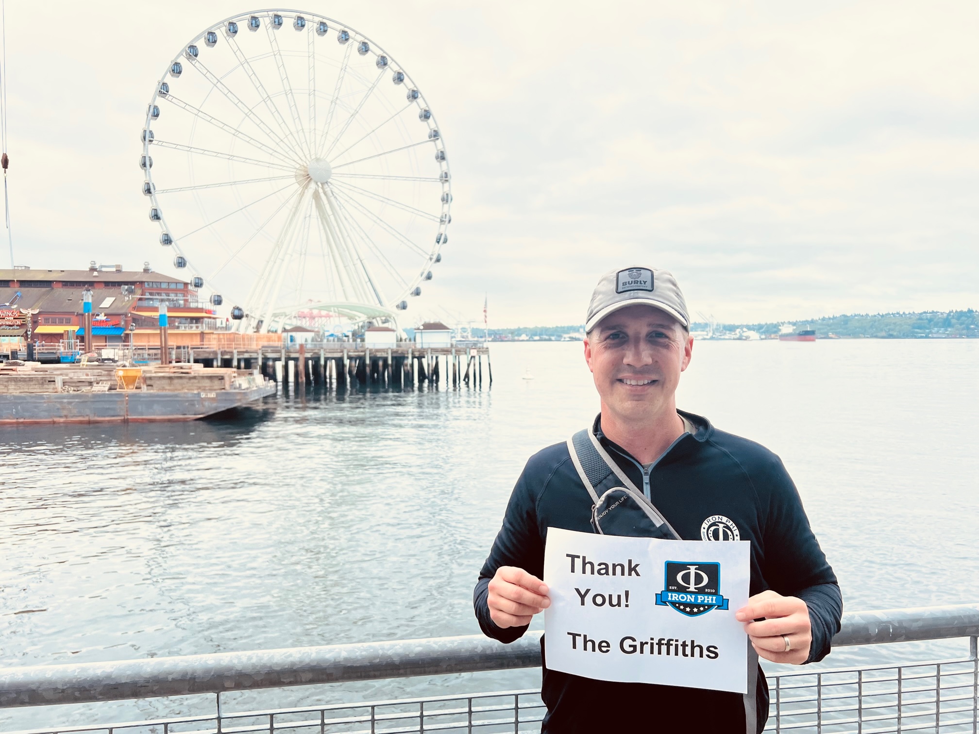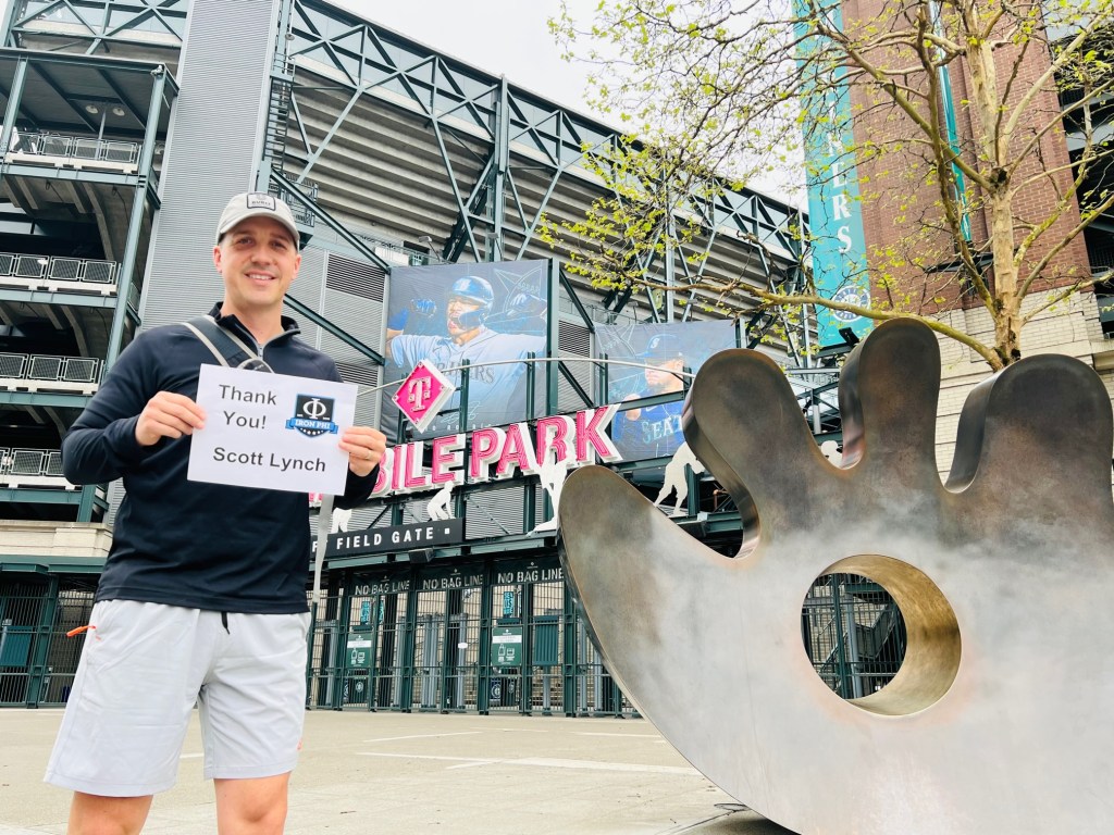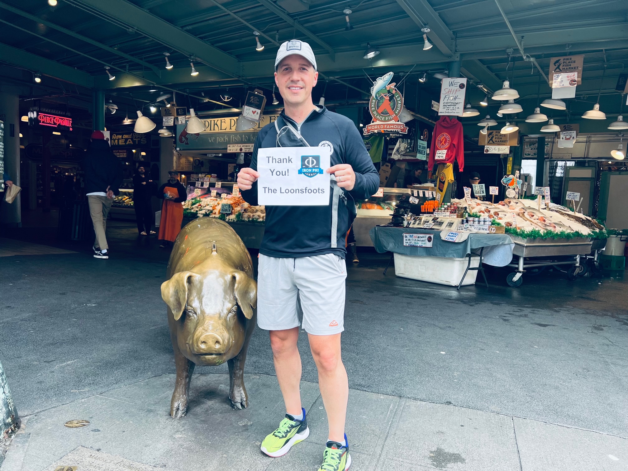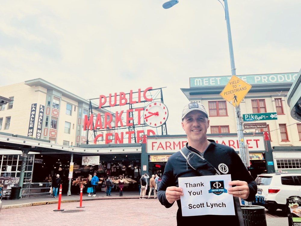 Tillie dropped off Sean and me at T-Mobile Park to kickoff our run. For you baseball historians, this is the old Safeco Field, the place that Ken Griffey Jr. built. I get to visit a number of ballparks each year with my work surrounding the Lou Gehrig Memorial Award, but I had never been to T-Mobile. I thanked Scott Lynch for his donation here, one of a few Scott signs today! Scott is a Phi Delta Theta volunteer, University of Pittsburgh (Pitt) alumnus, a Philly sports fan, and an all around fun person!