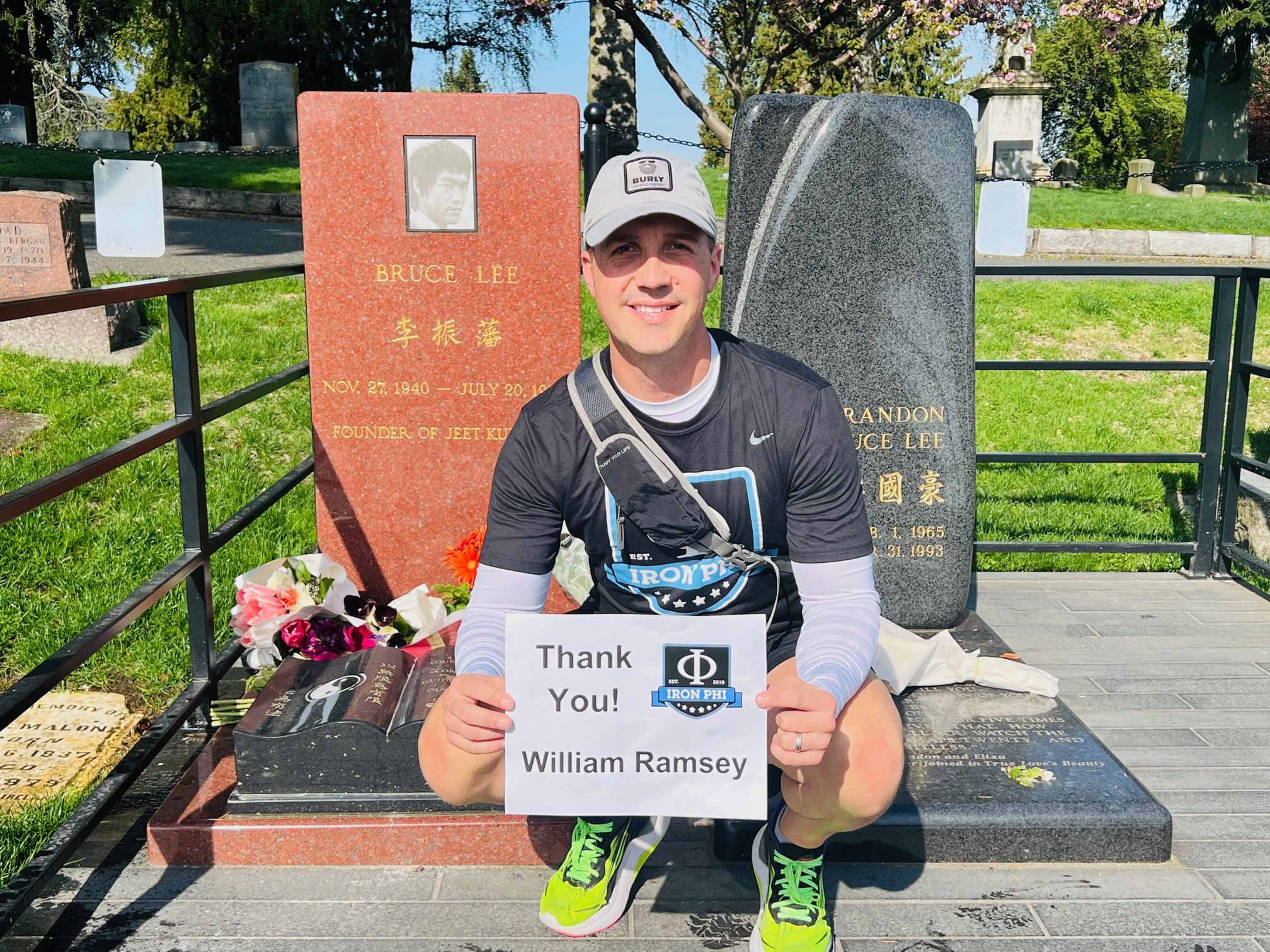 Volunteer Park is home to a fairly large cemetery, and within it, lies two very famous men from the Lee family – Bruce and Brandon Lee. Bruce Lee is considered by critics, media, and other martial artists to be the most influential martial artist of all time and a pop culture icon of the 20th century, who bridged the gap between East and West. Brandon, Bruce’s son, followed in his footsteps and led an intriguing life himself. At the grave site, I thanked William Ramsey, a Phi Delt from Louisiana State. It’s been great to connect with William over the past few years through his volunteerism with the Fraternity!