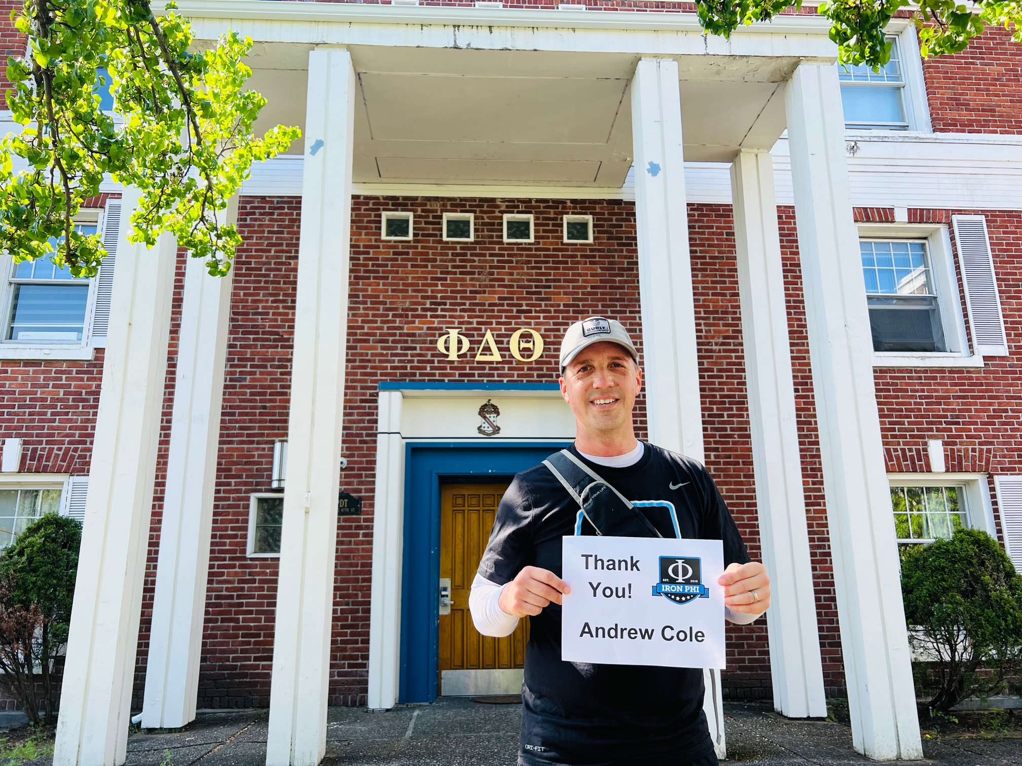 Running to the north side of campus, we entered a neighborhood filled with fraternity and sorority houses. So it only made sense to stop by the Phi Delt house. I really enjoy the young men from this chapter, and they’ve had some awesome recent success with the Iron Phi program. Being fairly early (especially for the life of a college student), we didn’t bother the guys inside the house, but instead, I used the opportunity to thank my colleague Andrew Cole with a runner’s choice. Andrew helps to lead our Foundation and is my go-to conference roommate.
