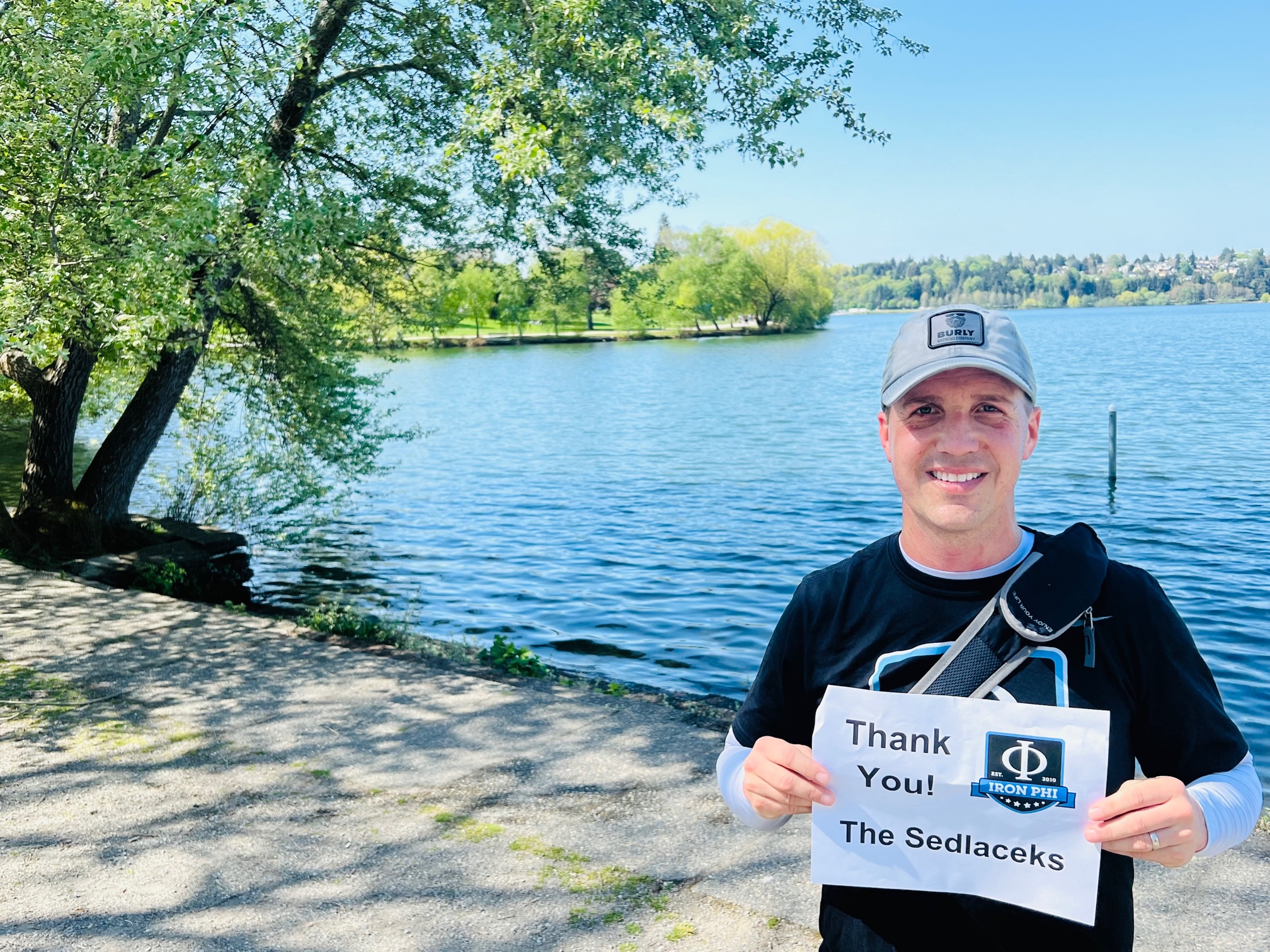 From campus, we continued north for a few miles to Green Lake Park, a sizable lake filled with runners/walkers, families, and canines galore. Rather than taking a picture and leaving, we decided to run around the lake. What’s another mile or two right? I once again thanked Mike & Deb Sedlacek for their donation.