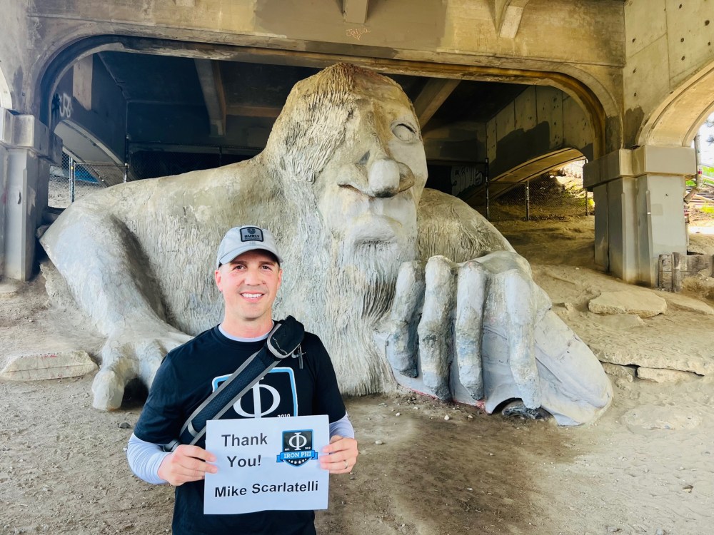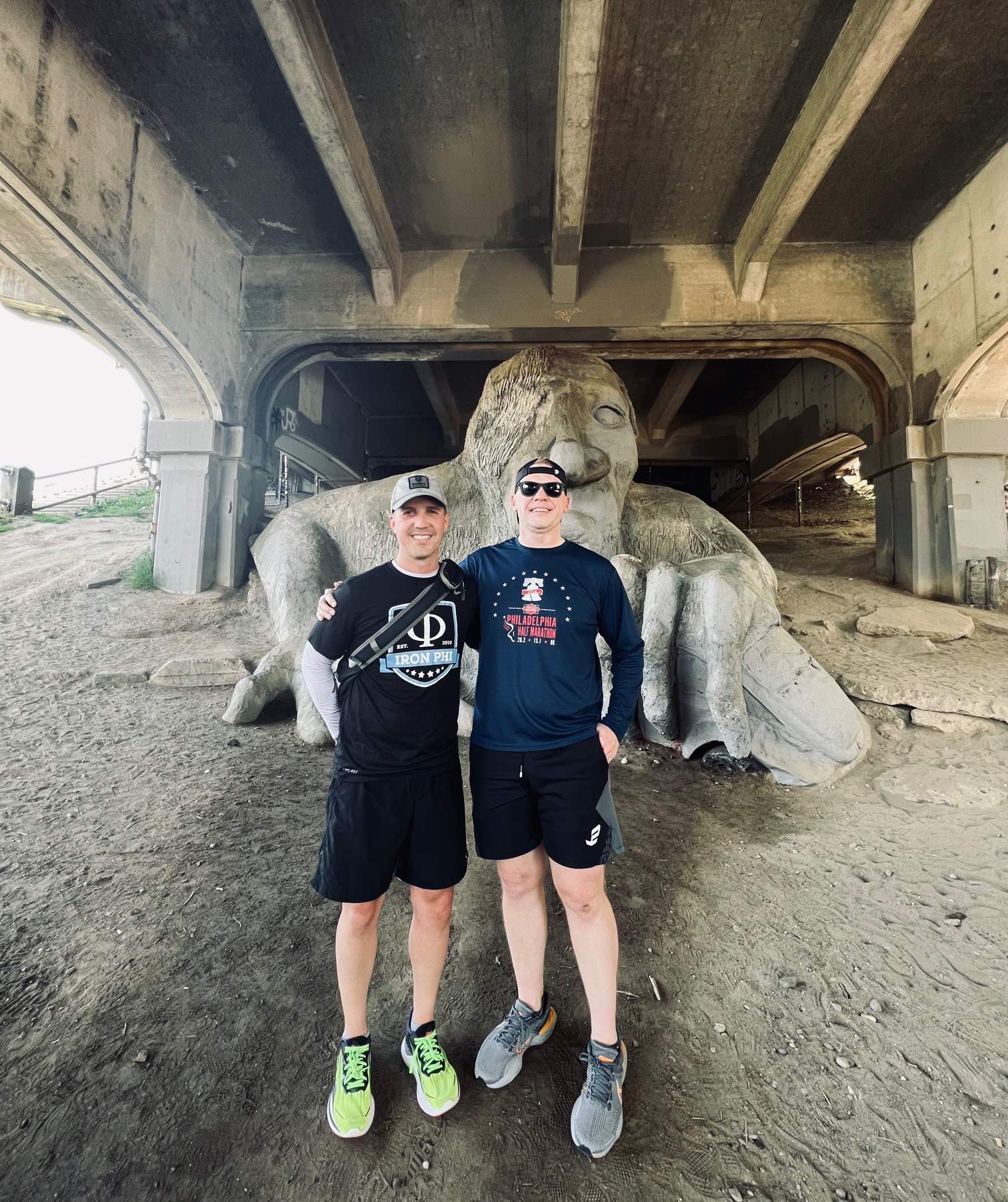 From the lake, we ran south to the amazing Fremont neighborhood that sits on Lake Union and is home to many recognizable tech companies, house boats, and fun shops and restaurants. Fremont is also home to the famous Fremont Troll. Ya’ll know I love a quirky landmark, and this is one of my favorites in the United States. Every time I visit Seattle, I have to make a trip to see my buddy. How perfect is this thing, stationed underneath a bridge (as a troll should), welcoming visitors to the neighborhood? I thanked my old pal Mike (Scar) Scarlatelli. I’d rival Scar’s running trip landmark choices over the years to anybody’s, and I always look forward to thanking him. Scar is a long-time volunteer for the Fraternity, and he was my small group leader back when I was attending Phi Delt conferences as an undergraduate.