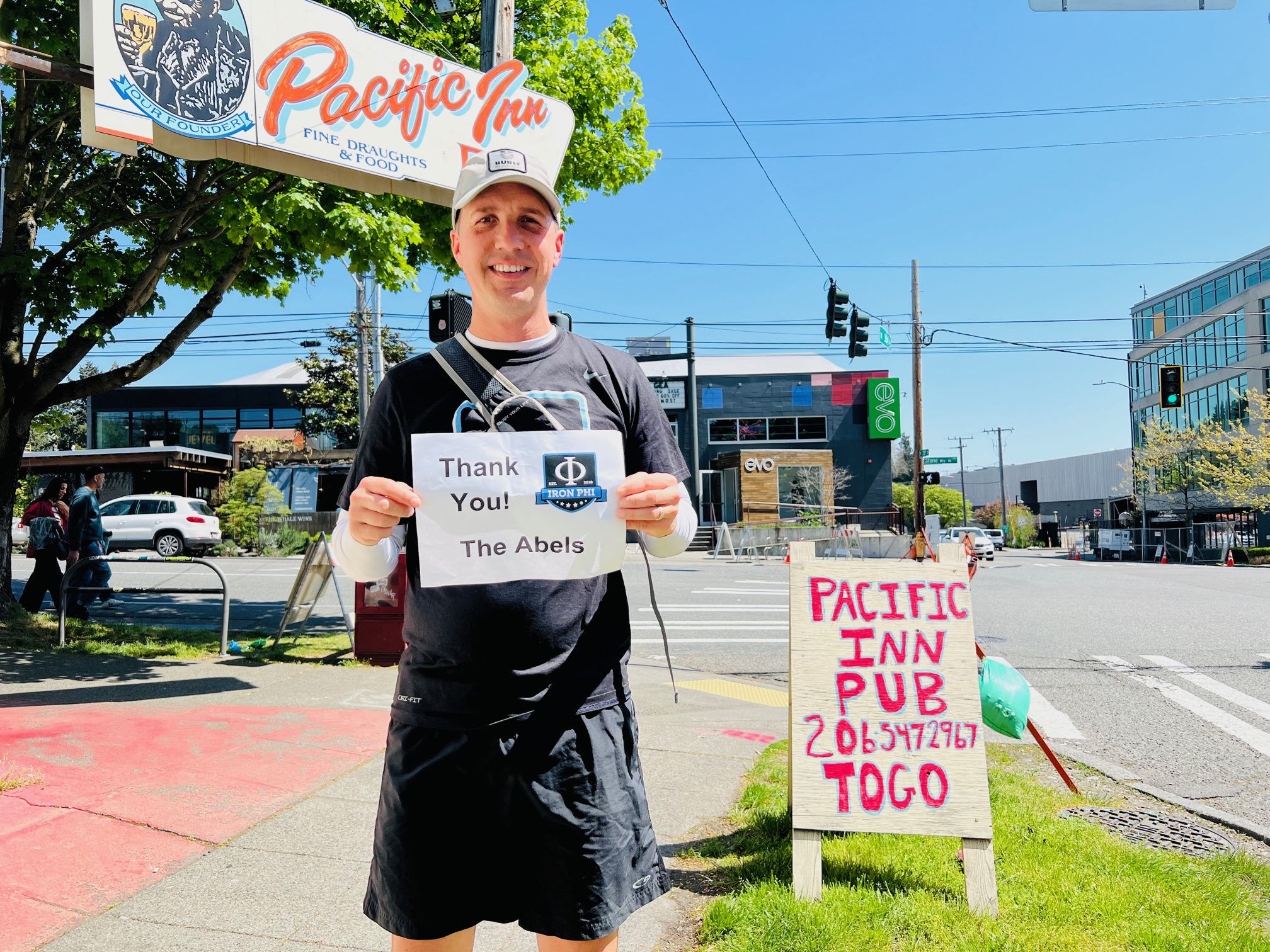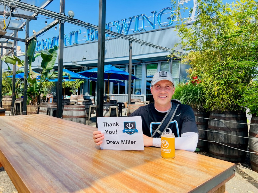 Just down the hill from the troll, we met up with our wives at Fremont Brewing, home of some of Seattle’s best brews. I thanked my Iowa State fraternity brother Drew Miller for his support! I ran into Drew last football season, and we were wearing the same hat. The guy has great style.