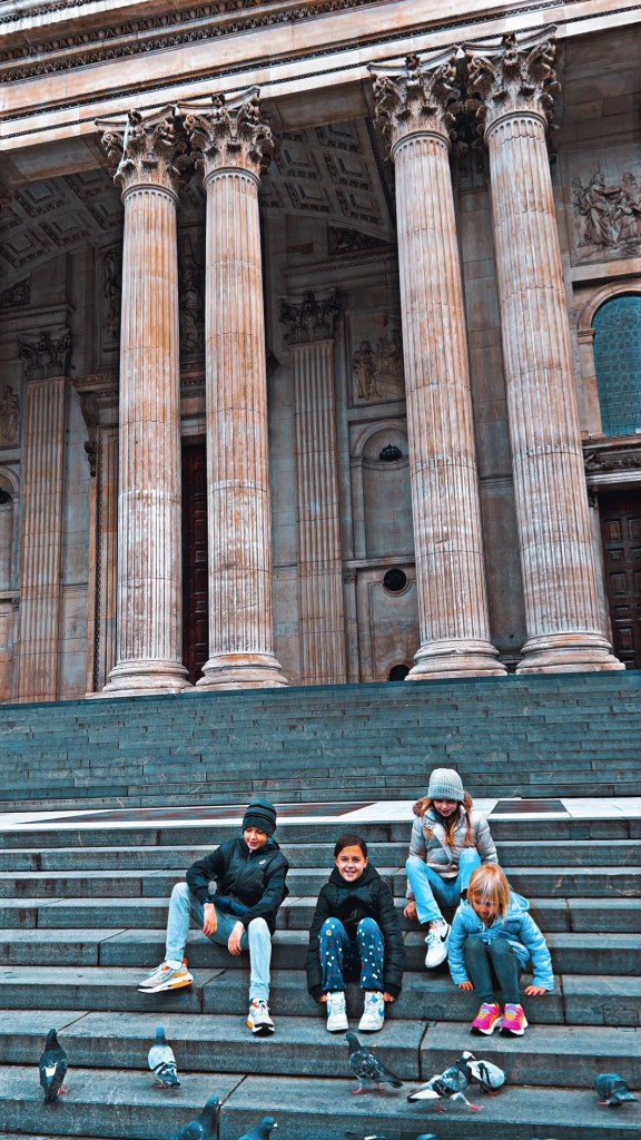 St. Paul’s Cathedral is one of the more majestic structures in London, and its grandeur can be spotted from many city views. We let the youngsters run around and burn energy at St. Paul’s while Tess and I thanked Lawrence and Brandy Cunningham again for their donation.