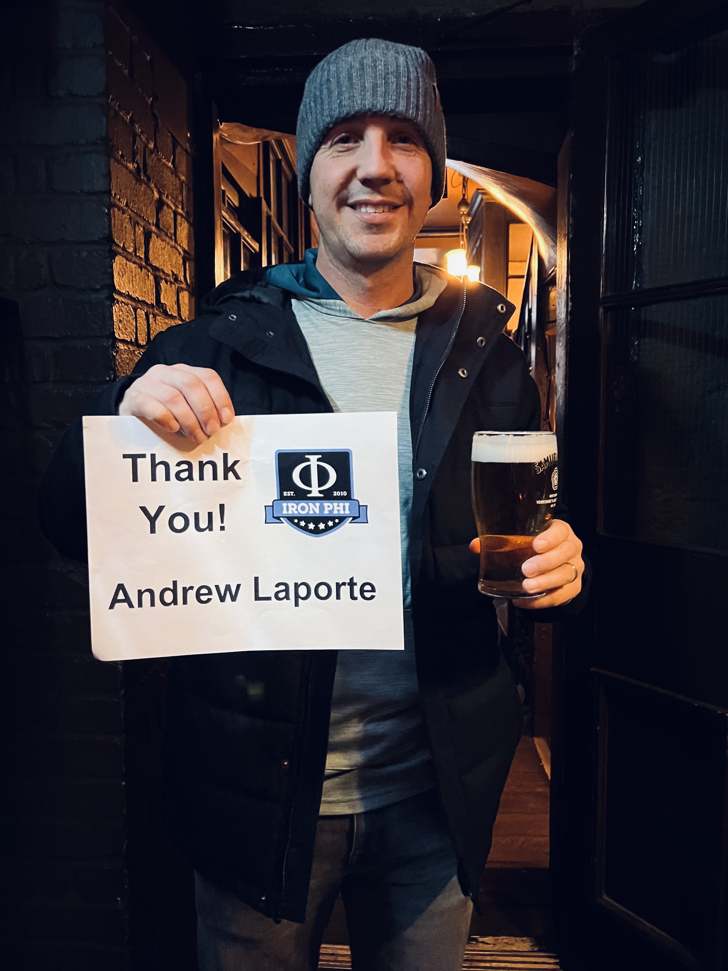 Pint in hand, we loitered in an open hallway and enjoyed the rustic atmosphere. I knew I had to find an awesome place to thank Andrew LaPorte while “drinking a beer in a pub.” We had found it, and the beer was as delightful as Andrew’s effortless mashed potatoes.