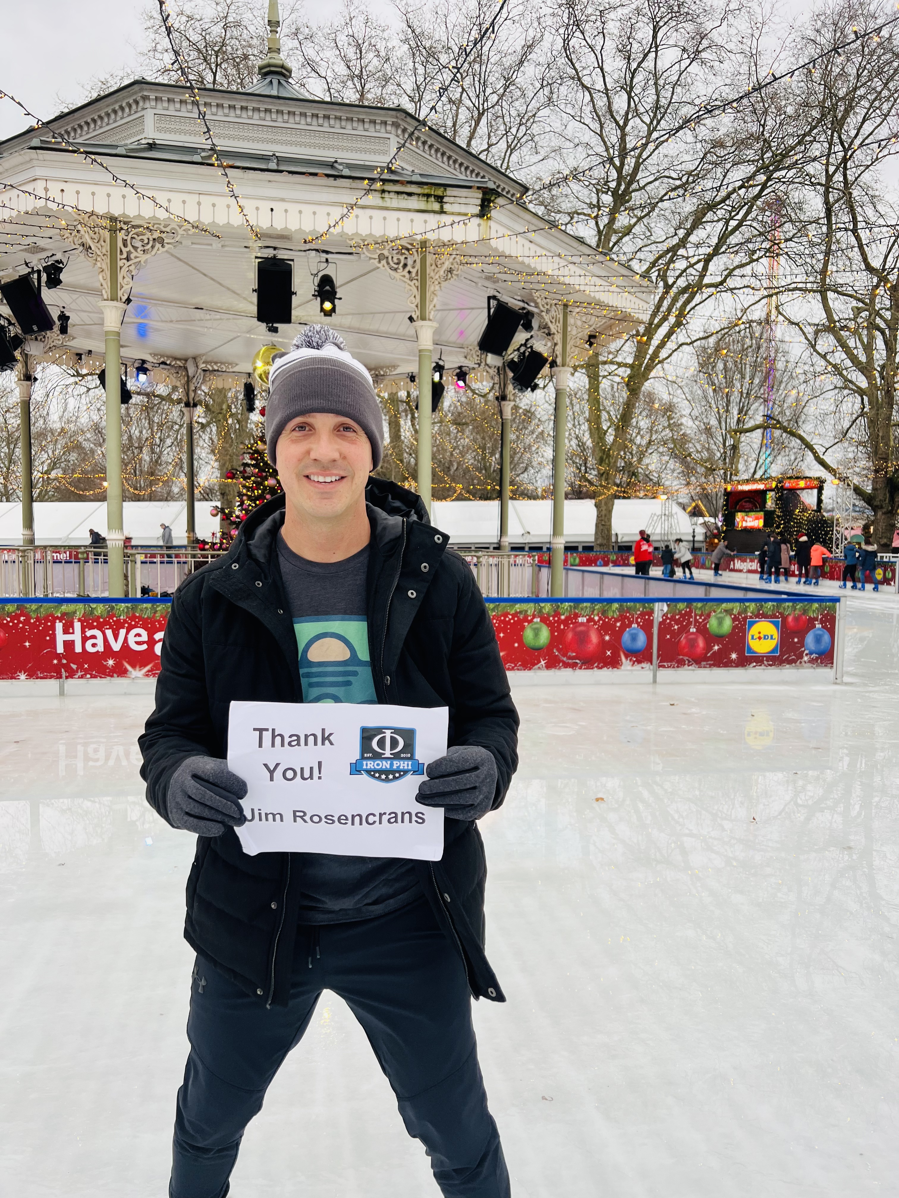 We strapped on our ice skates and were some of the first people on the ice that day at the Winter Wonderland. The kids immediately let us know that the ice wasn’t of their liking, and I immediately let them know that I had finally delivered on MY ice skating promise, just a few days later and in a different country. I also thanked my colleague Jim Rosencrans for his donation. I’m very excited for Jim as he and his wife Lauren prepare to welcome their first child into the world.