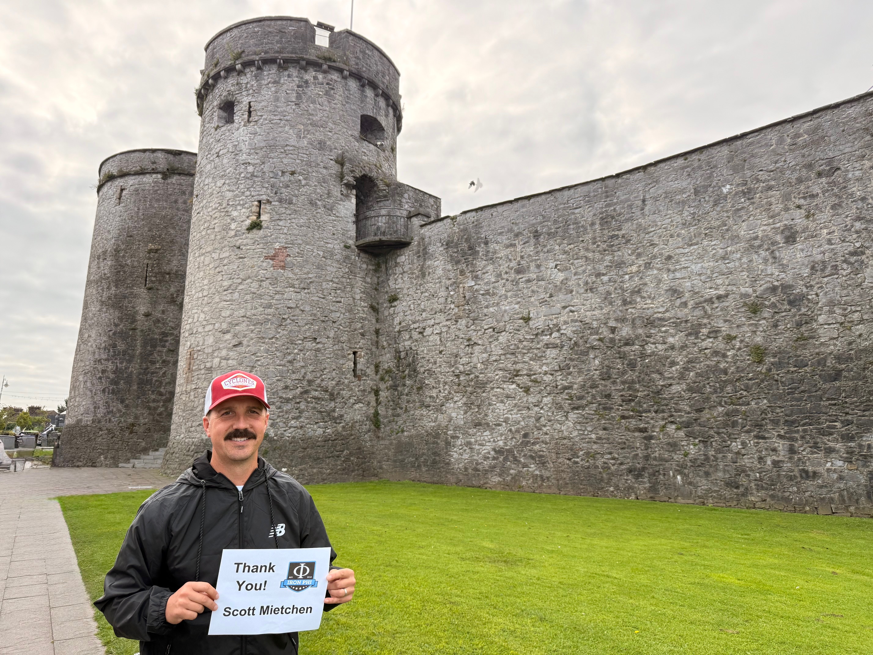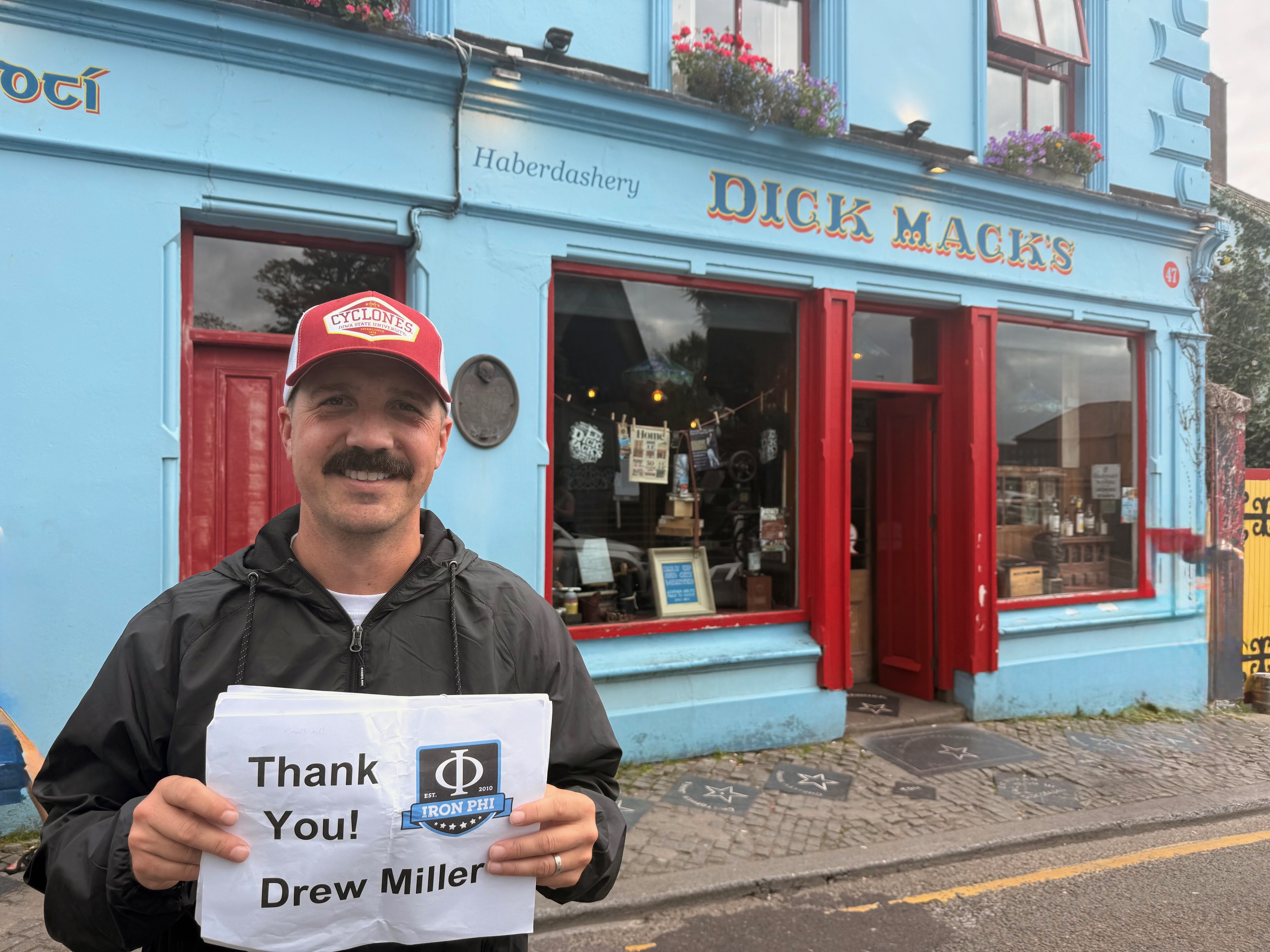 King John’s Castle sits on the River Shannon in Limerick, built on Viking foundations. The castle now houses interactive exhibits and offers impressive views from its battlements. I thanked Scott Mietchen who has always been a great friend and supporter of Iron Phi alongside the Phi Delts at the University of Utah.