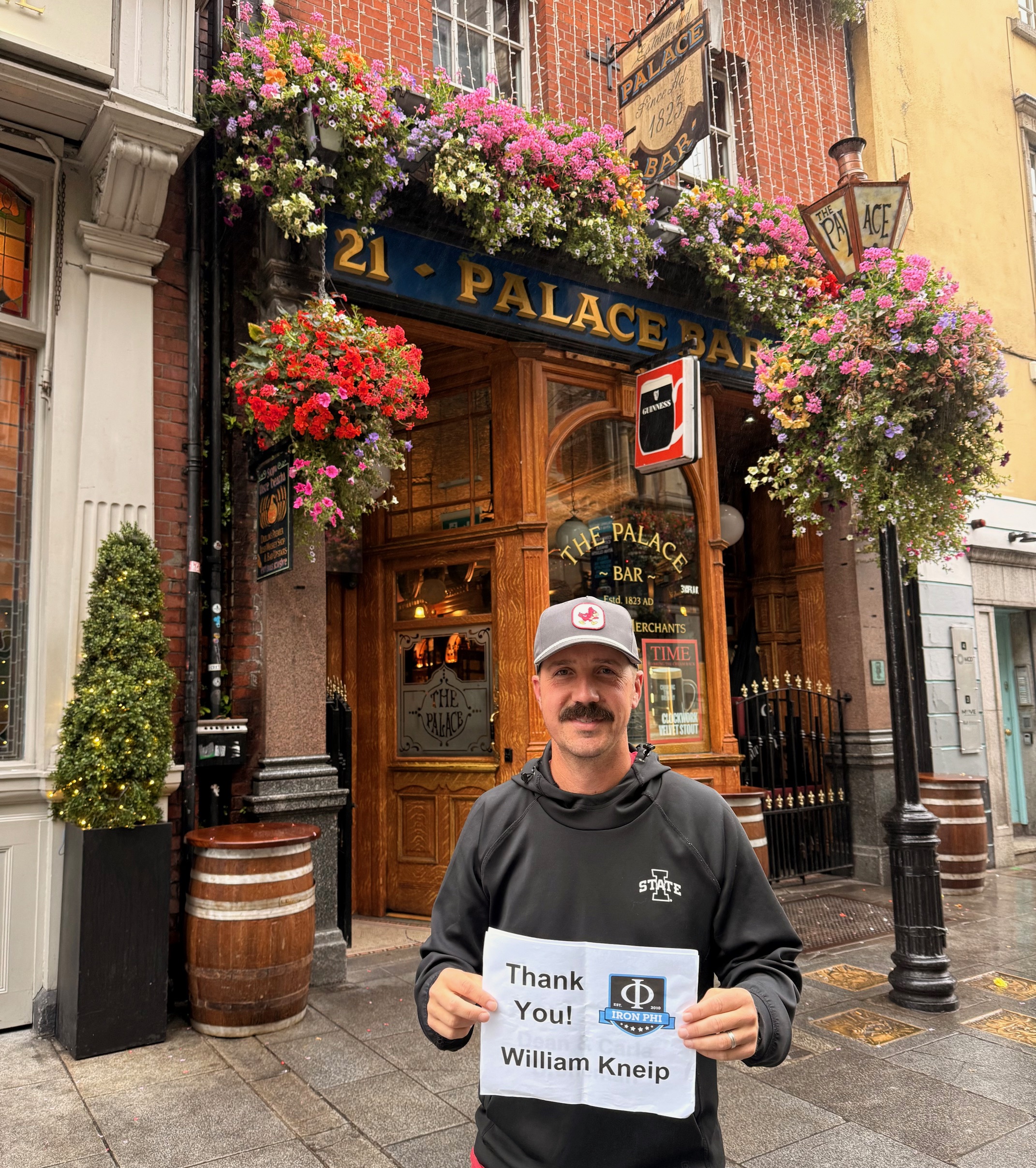 Once again, Mike Hyatt sponsored a world-class landmark, the famous Trinity College, Ireland’s oldest university, established in 1592, and home to the famous Book of Kells. Did I see the Book of Kells? No. I’m the son of a librarian, have seen so many books in my life, and was in desperate need of a shower. Brock Purdy jersey spotted in the background.