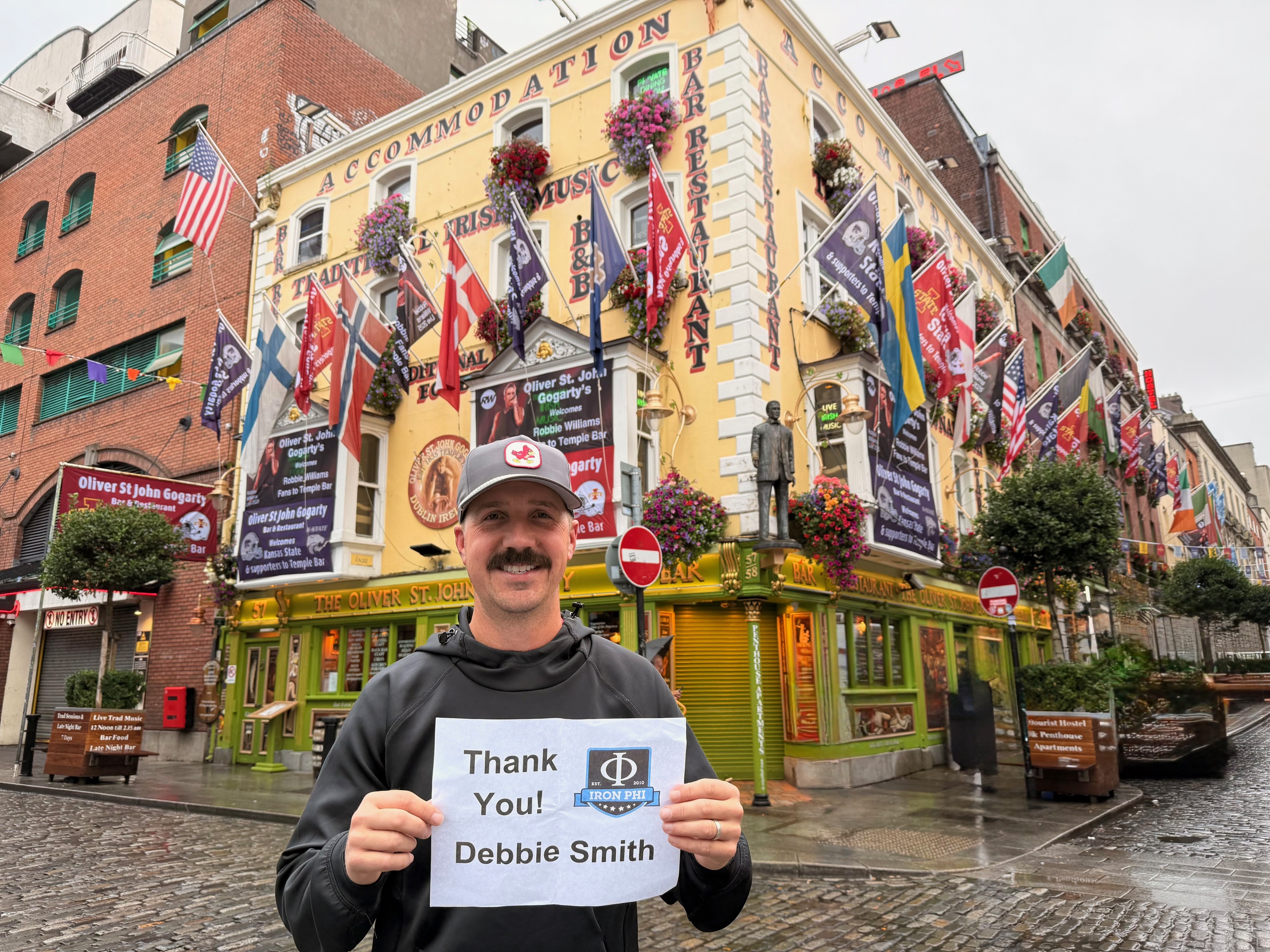 It was already time for coffee, and directly across from the chosen coffee shop was one of the most decorative pubs in Dublin – Oliver St. John Gogarty – which includes a restaurant, pub, apartments, hostel, live trad music daily, and definitely a flag for everyone. It’s a lot to take in, especially when you’re waiting for the coffee to kick in. I thanked my long-time colleague and fellow dog lover Debbie Smith. I also realized at this point that I should have added her husband Dave’s name to all of her signs as he is a super fan of A Good Run.
