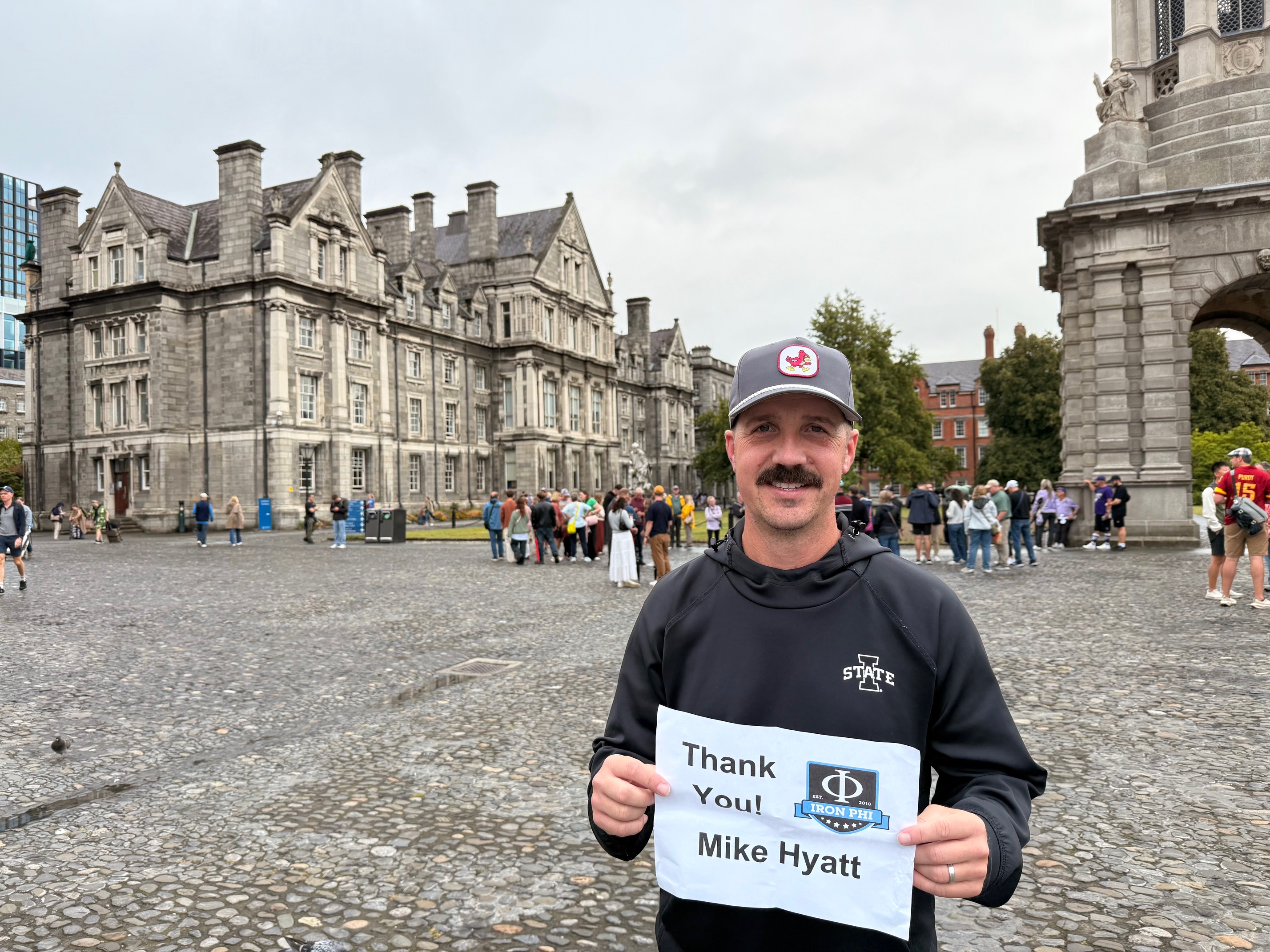As we had a pint at The Palace, Ryan maneuvered our way into a very special donor thank you opportunity. If you ask Cyclone football fans about what makes them proud, odds are that many of them will tell you the story of Jack Trice, Iowa State’s first African-American football player. While the story of Jack Trice is ultimately tragic, the Cyclones now play in Jack Trice Stadium. His story is important to us, and guess what, we found his great-nephew George Trice in the streets of Dublin. George is the executive director of the Trice Legacy Foundation that works to maintain his ancestor’s legacy through college scholarships and helps foster conversations about race and character. I thanked David and April Etler, our amazing friends who provided such great care to our kids in their early years.