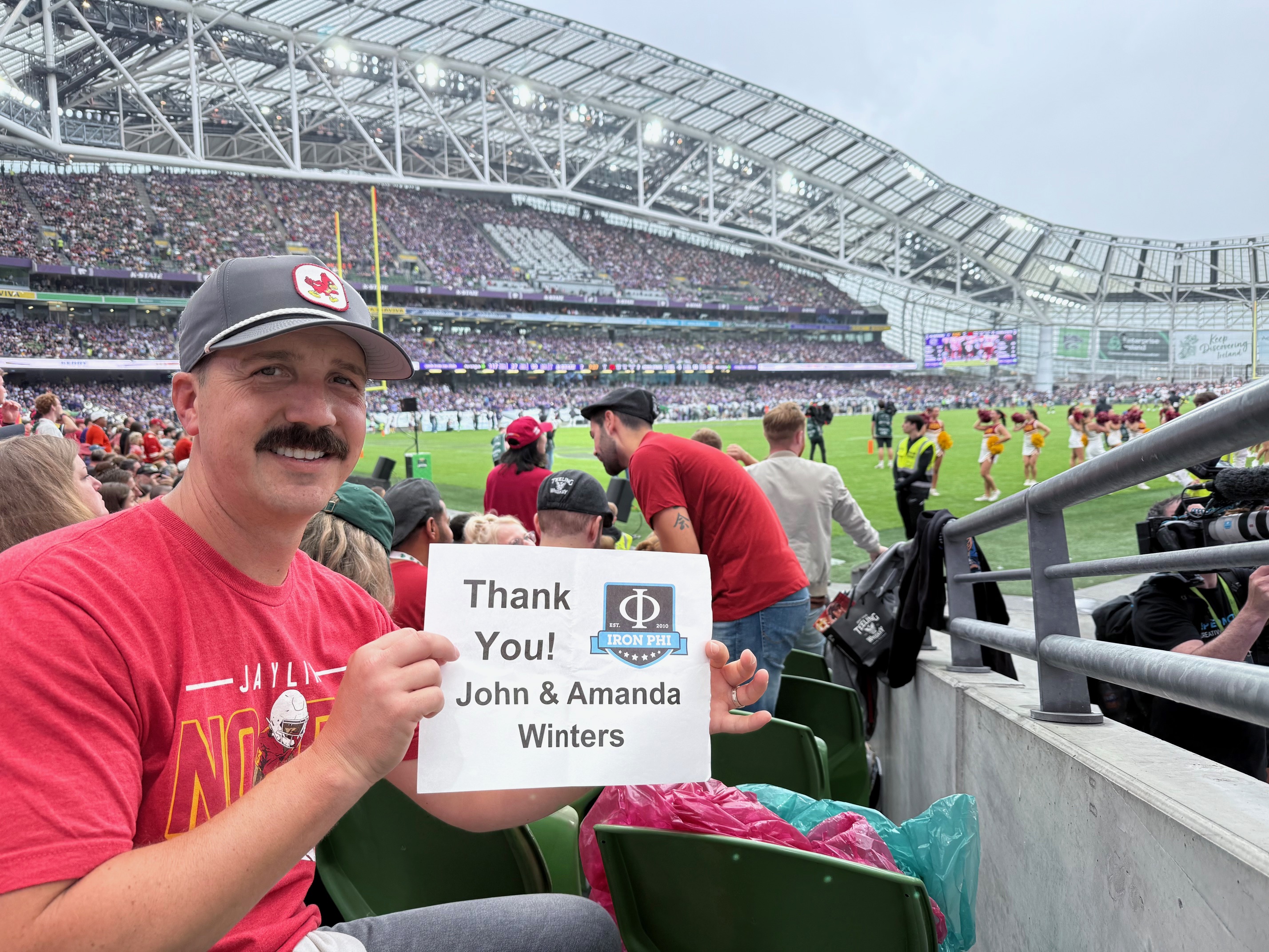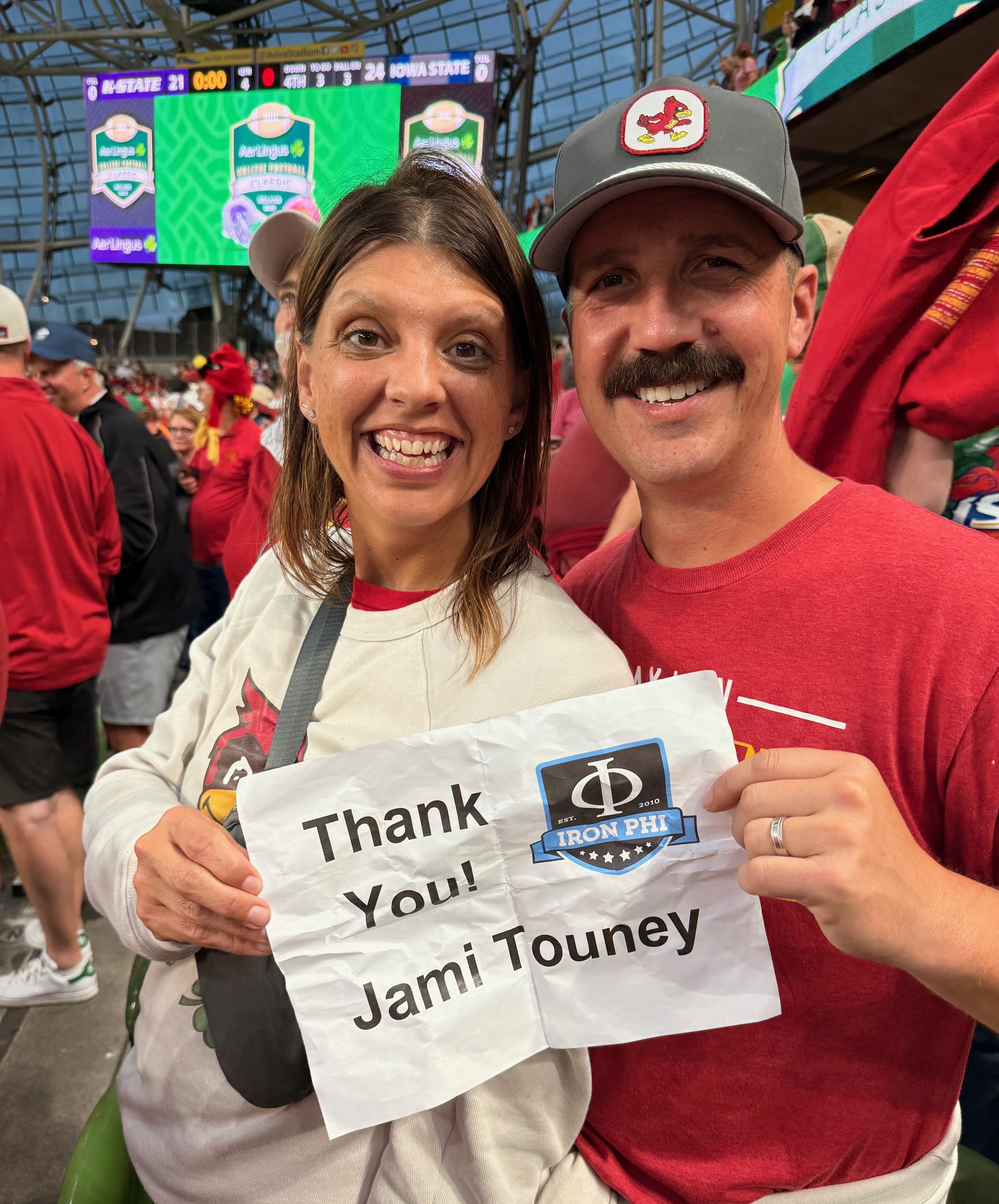 With the amazing crowd, I did my best to show off the experience with my remaining donor signs for the day, starting with my cousin Adam and his wife Lindsey. Proud Cyclones themselves, they were at home throwing an amazing shindig at their house for the game.
