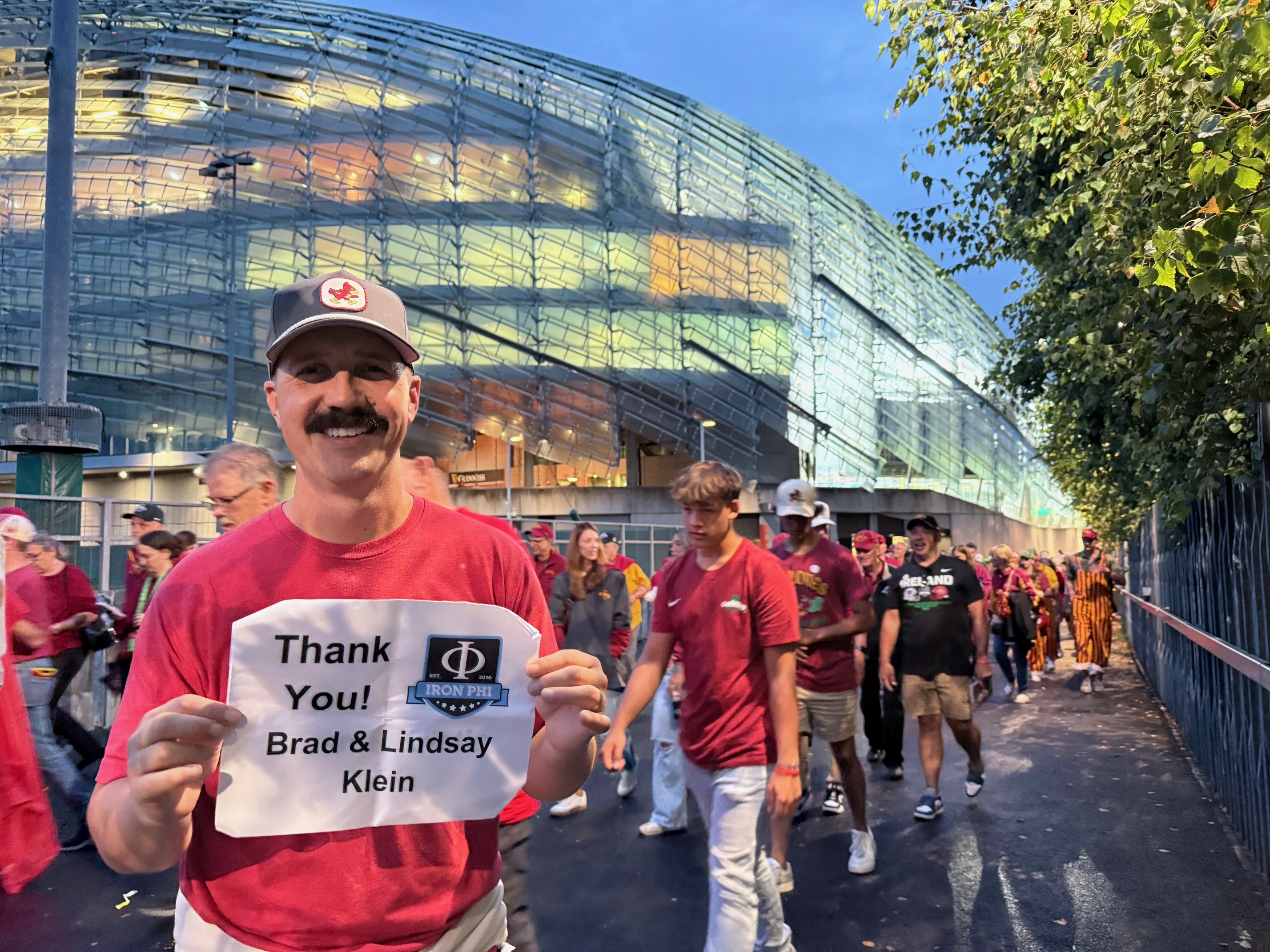 And last but not least, thanking our great friends and tailgaters Brad and Lindsay Klein during the victory walk home. We ended the day riding a horse named Commander back to the hotel in victory formation, and somehow there were no pictures snapped. What a day!